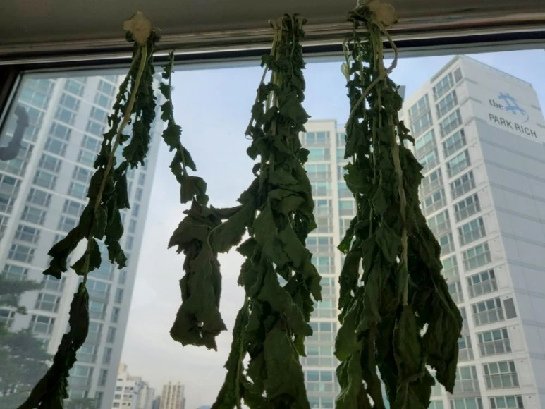 먹을 게 귀하던 옛날에는 겨울철에 얼마나 고마운 음식이었겠나마는 지금은 그렇지 않아서 냉동실에 들어가면 생각보다 잊어 먹길래 올해는 조금만 말려 보았다. 시골이건 도시건 어디라도 시래기 마르는 풍경의 정겨움은 한 가지다.