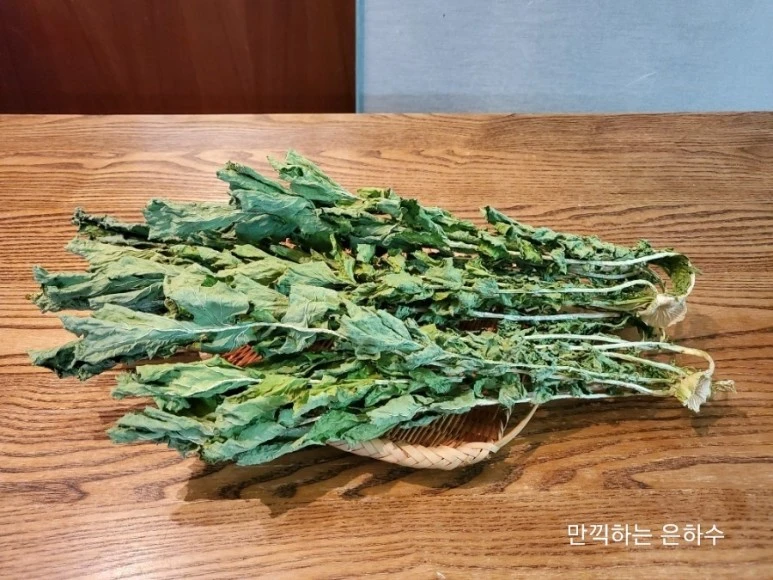 싶어 궁금해서 나가보니 잘 마른 시래기를 이젠 넣어야겠다 싶어 소쿠리에 담아 이렇게 둔 걸 보고, 앓는 듯이 예뻐하고 있는 거다.