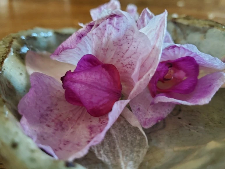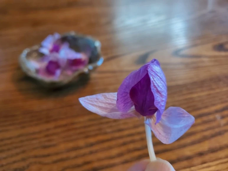 사 개월 넘게 내 뜰에 피어있다 이제 가기 시작한다. 생명이 다 빠져나가지 않은 듯 만지면 아직 따습다. 아들이 어릴 적 고사리 손으로 옴짤거려 만들었던 그릇에 쫑쫑 담는다.