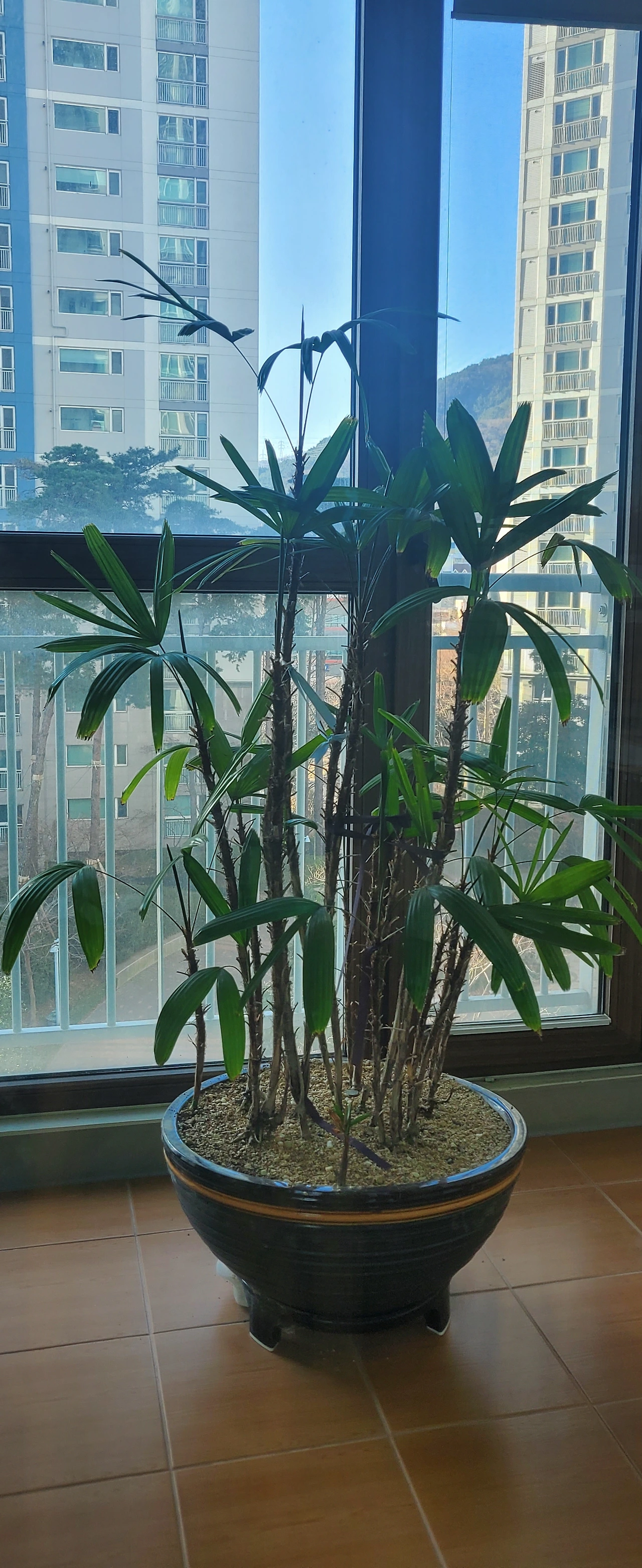 내가 만든 탁자와 20년 기른 관음죽. 잘 보내었다.