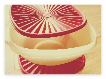 1984년에 미국에서 산 이 그릇은 그 당시 새로 개발된 고급 플라스틱 재질로 된 제품이었다. 이것 말고도 냉장고 용기로 나온 여러 모양의 통과 야외 도시락 등 구색 맞춰 꽤 많이 장만했었다. 다른 것들은 나도 모르는 사이에 다 없어졌는데, 이것만은 지금도 여전히 잘 쓰고 있다.