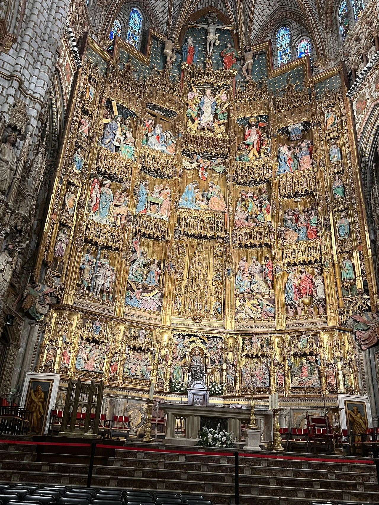 중앙에 있는 성가대실의 의자 하나하나에 새겨진 정교한 목각은 고전적인 아름다움을 자랑한다. 화가 엘 그레코와 고야의 작품도 여러 점 소장하고 있는 유서 깊고 화려한 성당이다.