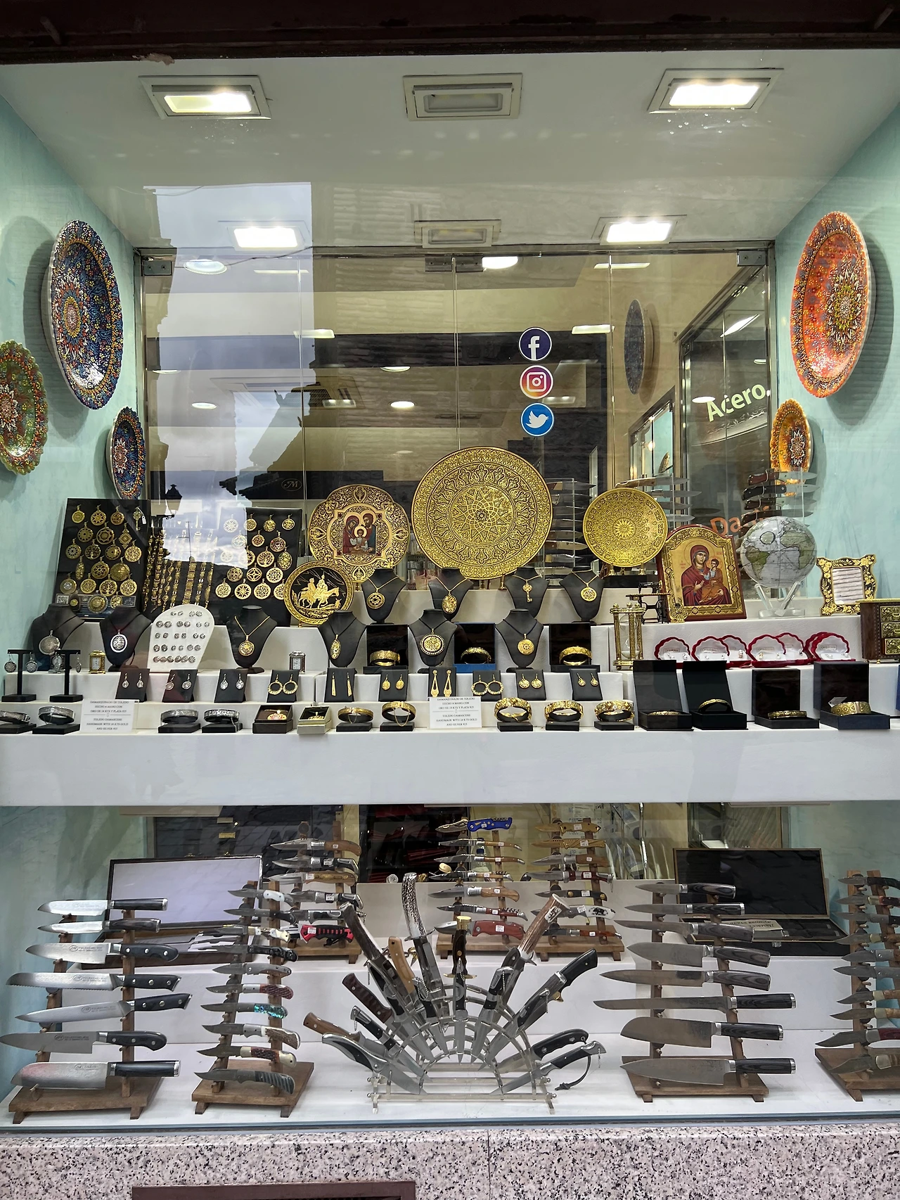 우리가 도착했을 때는 이미 거리에 있는 기념품 가게 대부분이 문을 닫았다. 그나마 불이 켜진 곳은 특산품인 철제품과 칼을 파는 가게밖에 없었다. 행여 길을 잃을세라 일행의 꽁무니에 바짝 붙어서 미로 같은 골목길을 내려가면서도, 불 켜진 특산품 가게를 그냥 지나칠 수는 없었다. 우리는 가게 앞에 잠시 멈춰서 사진을 찍었다.