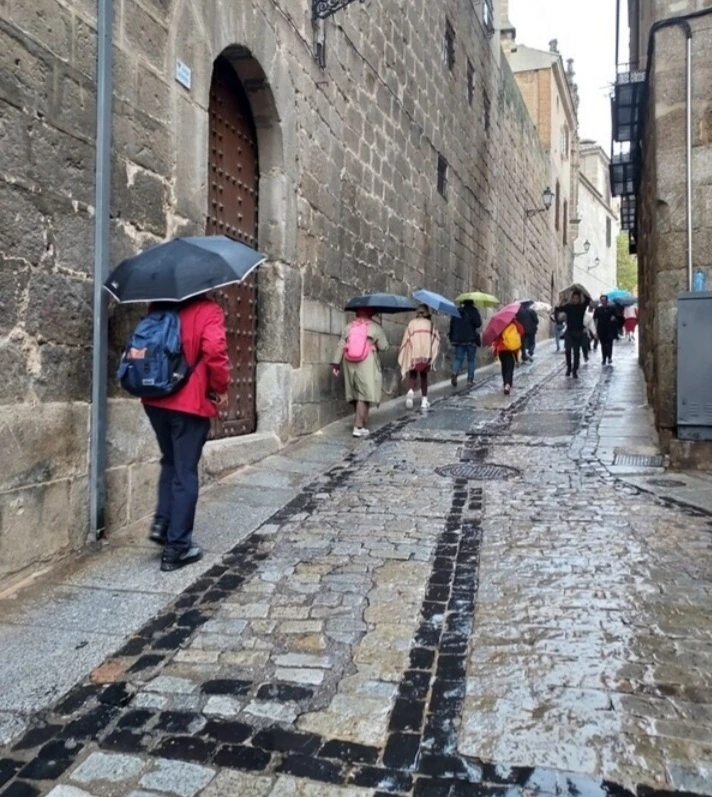 큰 가방에서 우산을 꺼내오긴 했지만 여태 필요가 없었다. 그런데 우리가 톨레도 대성당에서 나오자 비가 부슬부슬 내리기 시작했다. 일기예보를 믿고 온종일 우산을 들고 다닌 보람이 있다.