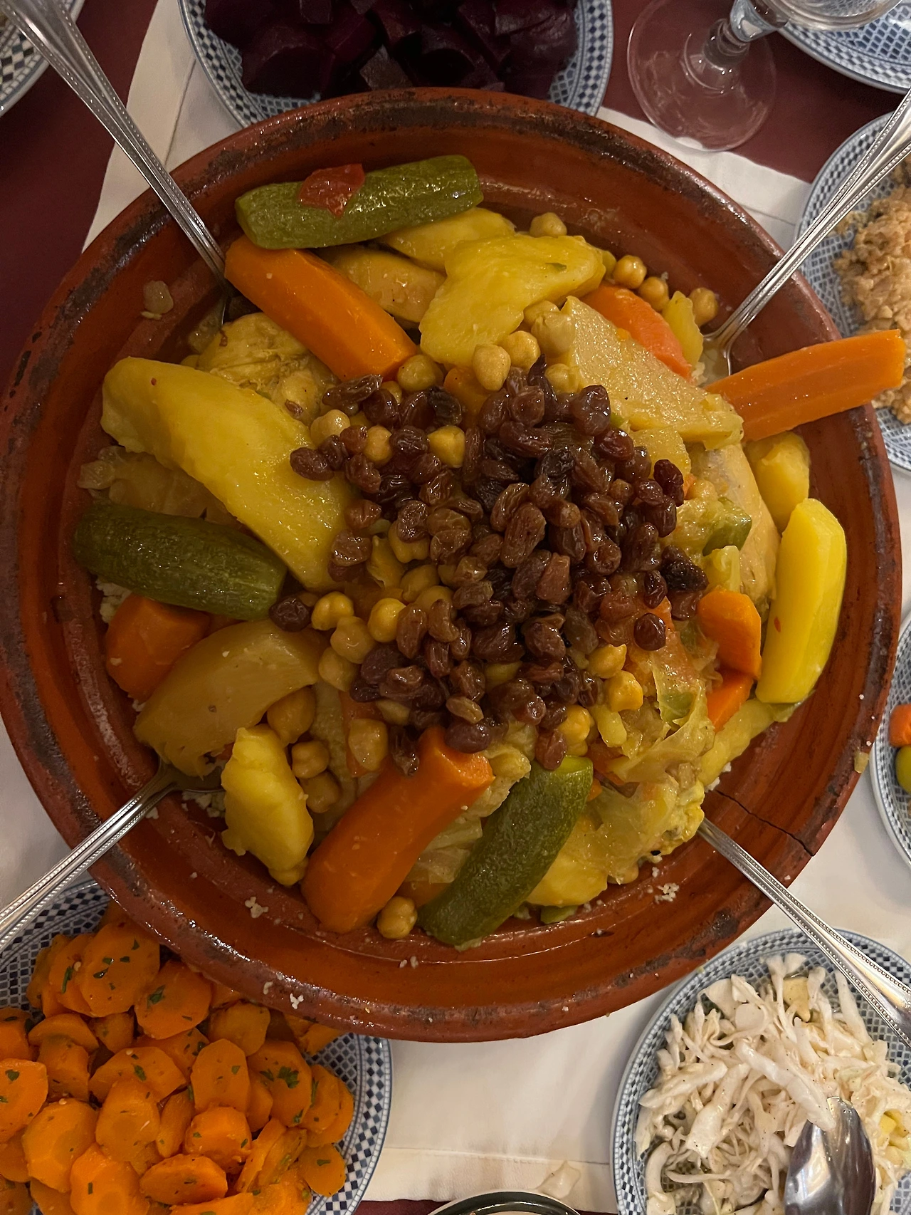 점심 메뉴는 모로코 전통 음식 쿠스쿠스였는데, 특별한 날에 가족들이 함께 즐기는 음식이었다.