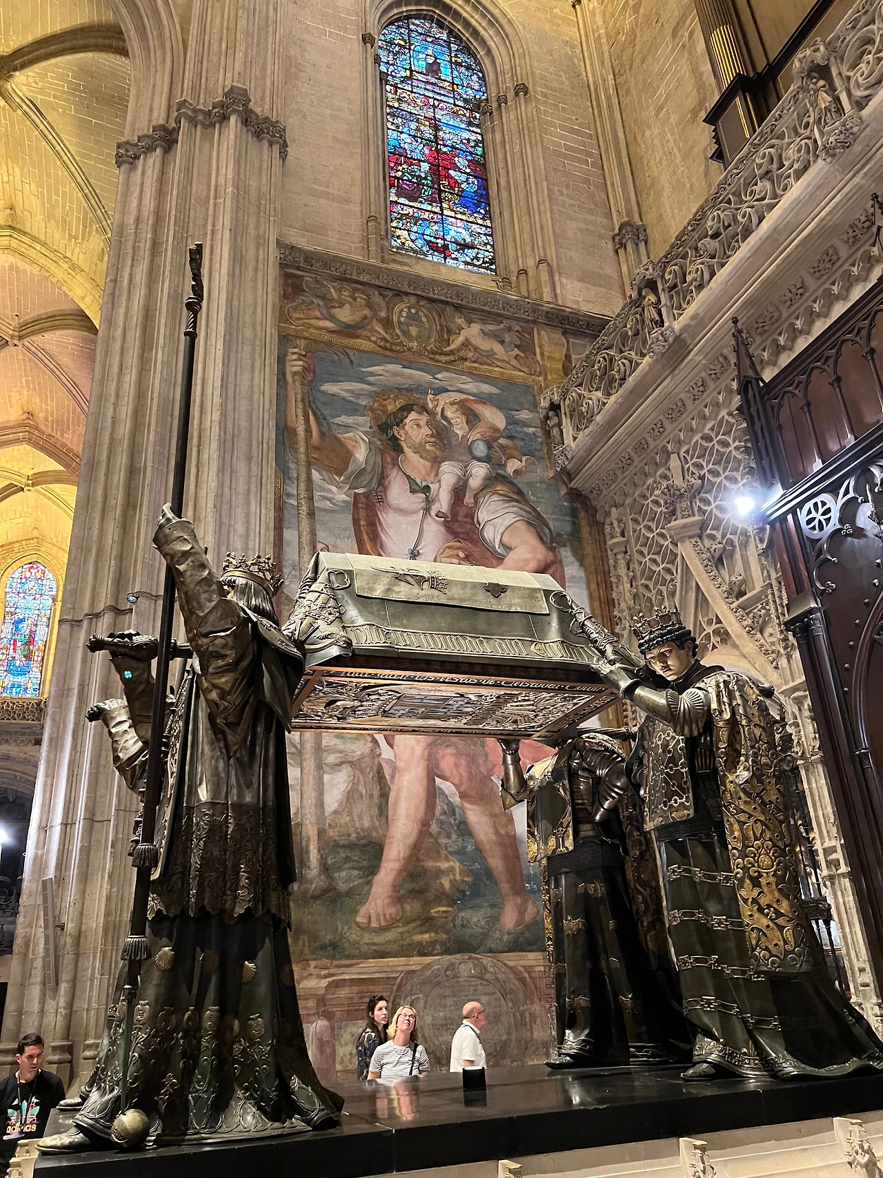 그의 유골이 담긴 관은 땅에 묻히지 않고 공중에 있다. 황금으로 번쩍거리는 세비야 대성당 본당에 자리를 잡았다. 왕의 복색을 한 4명이 어깨로 관을 메고 정중하게 서 있다. 다시는 스페인 땅을 밟지 않겠다던 그의 다짐은 그런 형태로 실현되었다.
