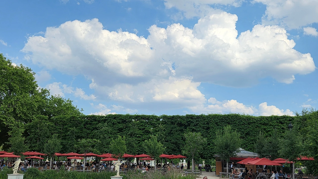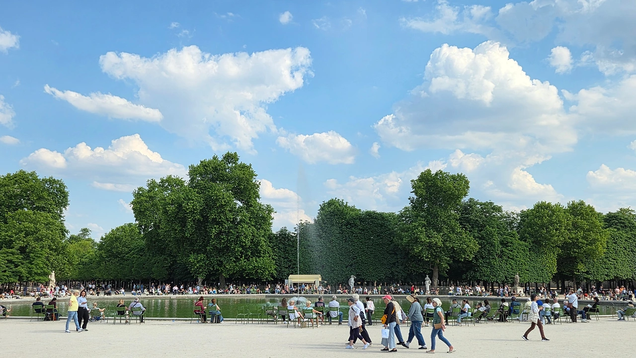 튈르리정원에는 뒤로 젖혀지는 의자가 있었다. 누워보니 정말 발의 피곤이 풀리는 듯 시원했다. 누구 아이디어인지 우리나라에도 도입했으면 좋겠다. 혹시 벌써 있나. 무성한 나무들과 물 위에서 노는 오리 가족. 분수를 향해 앉아 있는 사람들. 다 좋아 보였다.