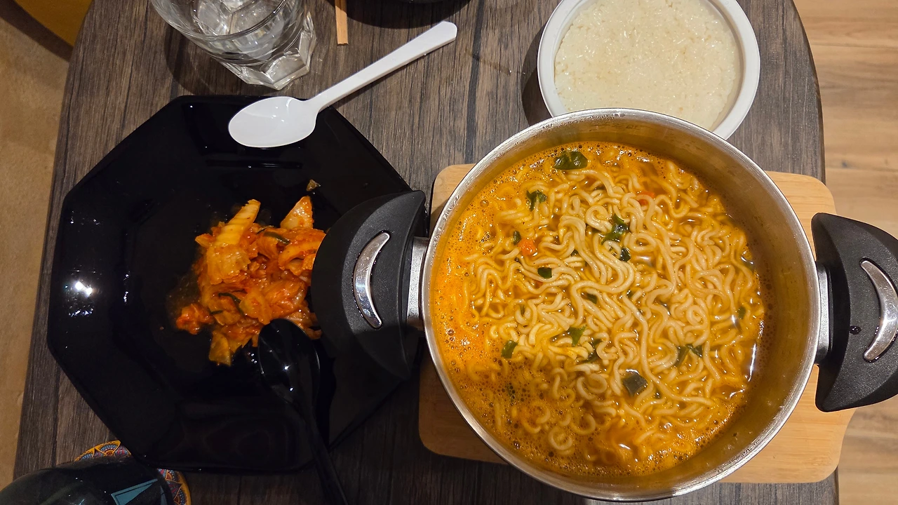 저녁엔 너구리 두 개를 끓이고 햇반 하나를 덥혀서 먹었다. 음 김치냄새~
