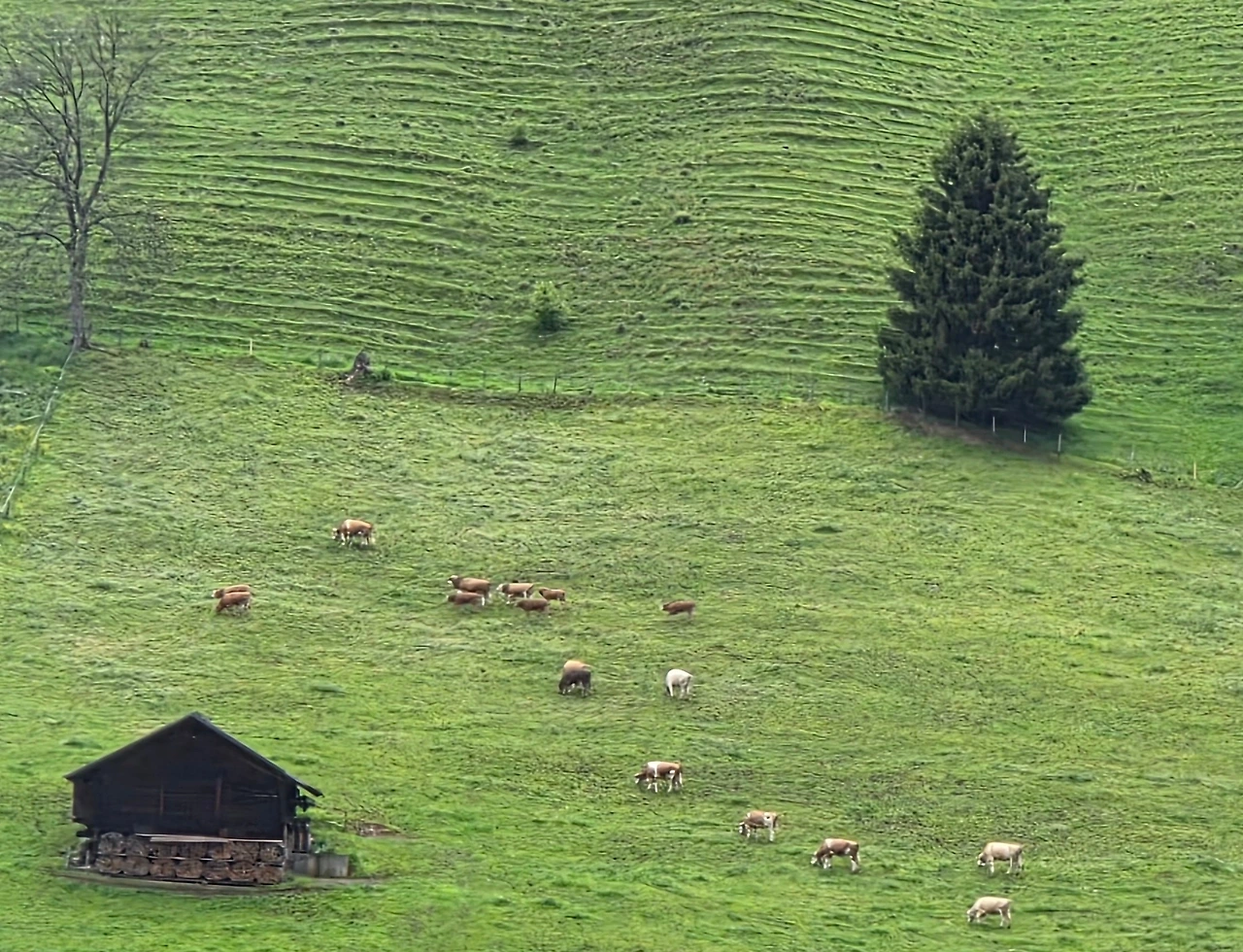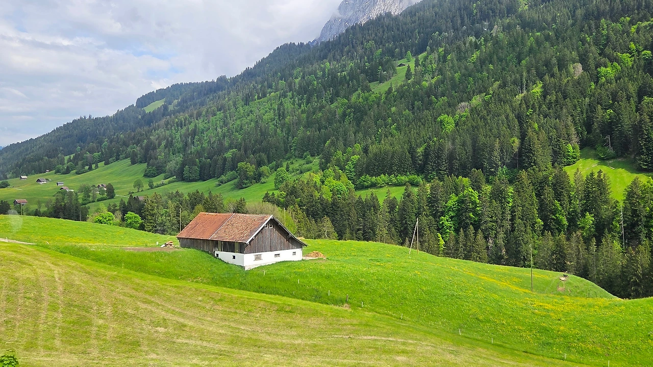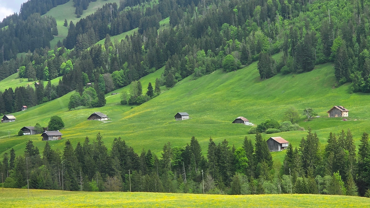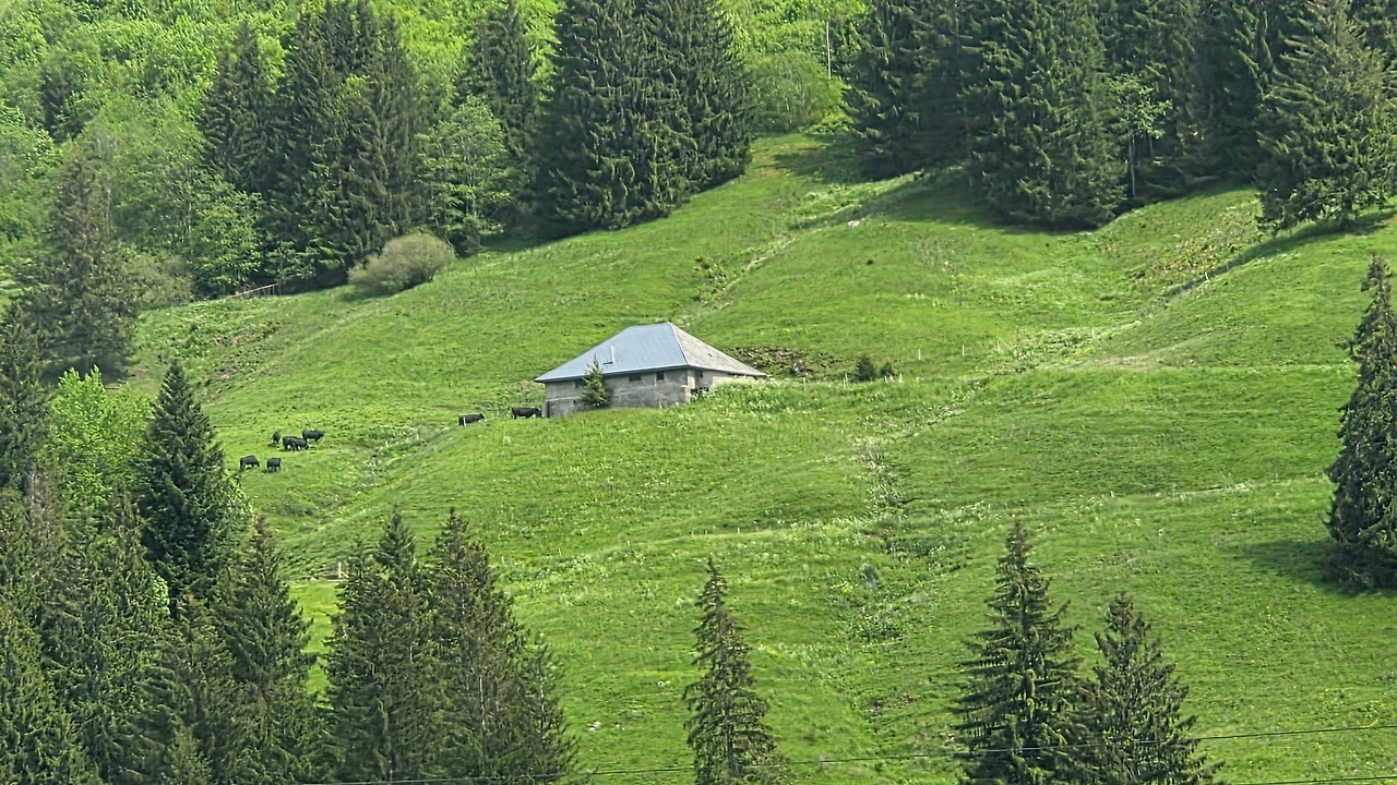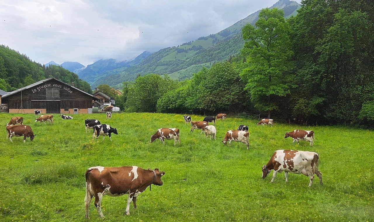 스위스 풍경은 차원이 다르네. 여기가 바로 '지상 낙원'이다. 높은 산에도 집을 짓고 살다니 대단하다. 자세를 아예 창문 쪽으로 틀어서 앉았다. 내 눈동자가 초록색으로 변할 것 같다. 이쪽을 보면 반대쪽 창문 풍경이 예뻐서 고개를 좌우로 돌려가며 봤다. 특별히 좋은 풍경이 나오면 사람들이 아예 서서 찍었다.