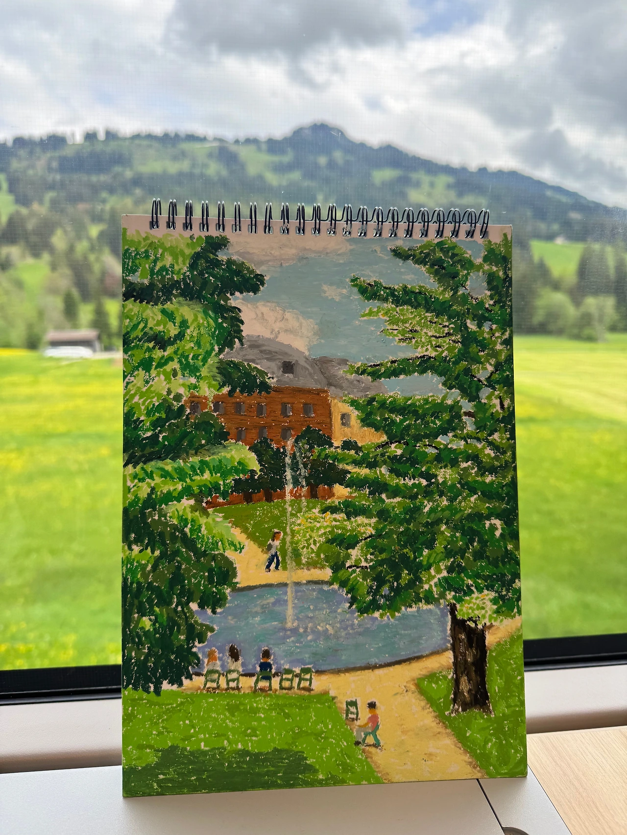 풍경 봐야지 그림 그릴 시간이 있을까. 딸은 그림을 그리다 구경하다 하겠단다. 딸의 인생 첫 오일파스텔 그림이다.