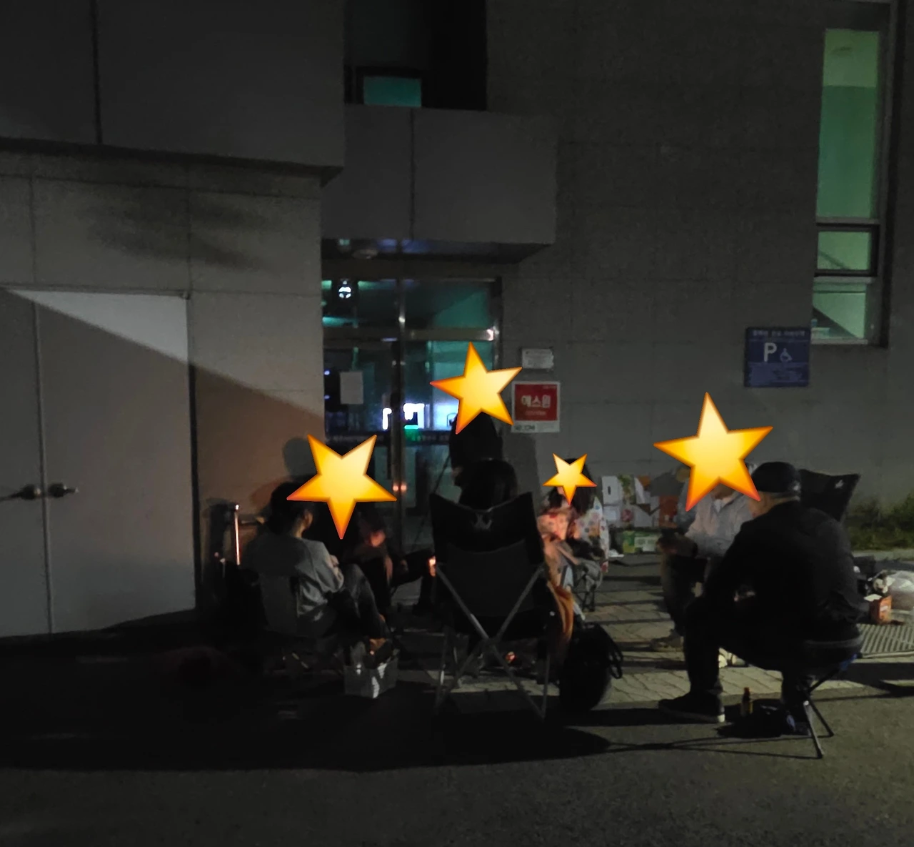 남자들이 빠져나가야 할 시간이 되었을 땐 여자들 뿐이라고 단톡방에 올리니 남자 둘이 그 새벽에 나타났고, 아침이 밝아올 즈음엔 커피와 햄버거를 잔뜩 들고 나타난 분도 있었다. 잠시 목소리가 커져서 다른 쪽이랑 긴장감이 돌기도 했지만 여유분의 햄버거와 커피를 옆 쪽에 건네줬고 고맙다는 말을 들었다. 단체 사진을 다른 쪽 지킴이에게 부탁했는데 흔쾌히 찍어줬다. 시간이 흘러 푸르스름하게 날이 밝아왔다. 임무를 마치고 헤어질 때 다른 쪽과도 수고하셨다는 인사를 주고받았다.