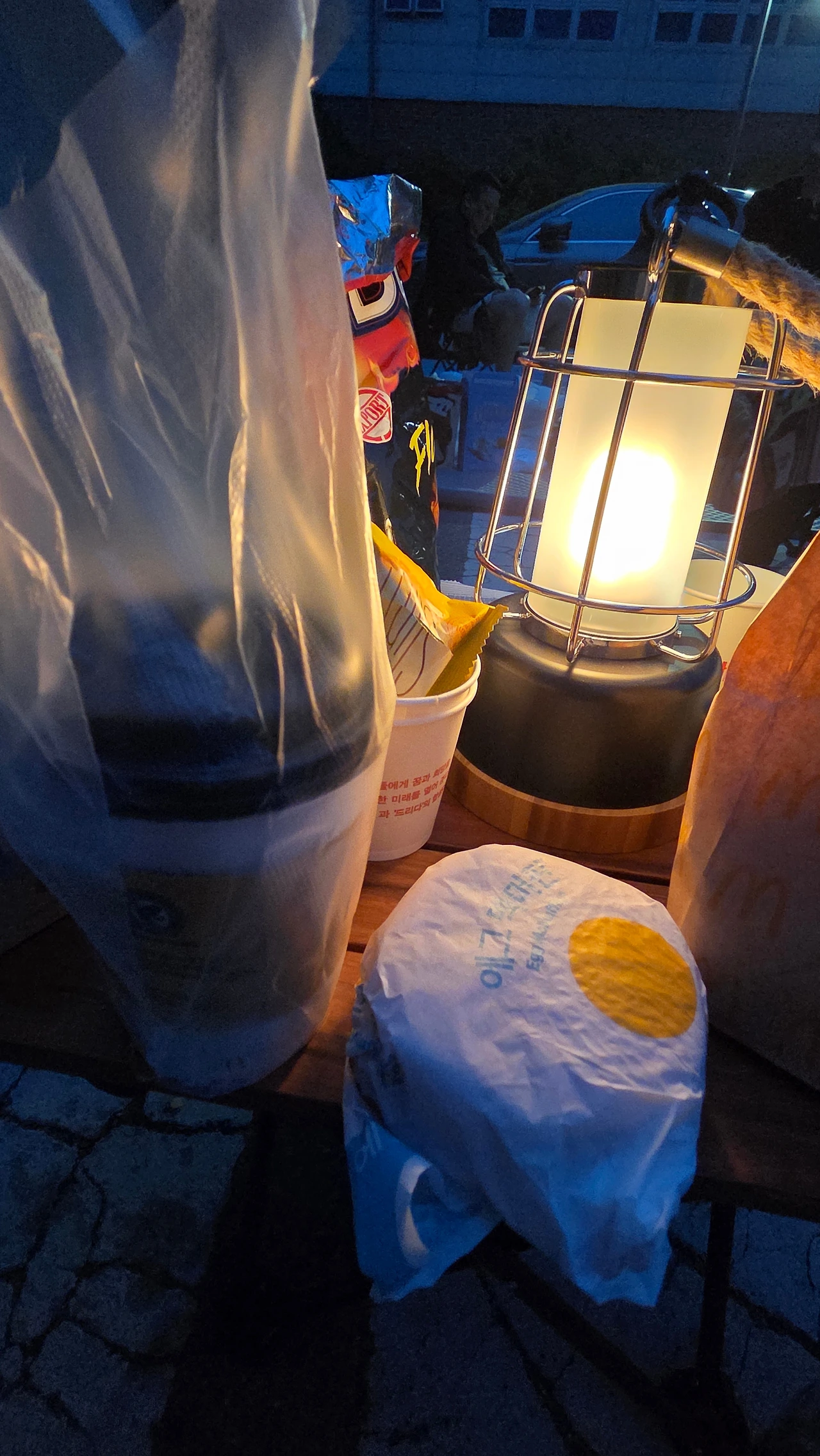작은 접이식 탁자 중간에 랜턴이 있었고 간식과 음료수도 있었다. 각자 사들고 온 거다. 이런 분위기인 줄 모르고 우린 우리 먹을 것만 싸갔는데. 마치 모닥불 주변에 둘러앉아 노래라도 불러야 할 것 같아 어리둥절했다. 우리를 보더니 여자분들이 재매냐고 물었다. 자신들도 자매라면서. 그 후에 온 또 다른 여자 둘도 자매였다. 자매가 세 팀이라니.