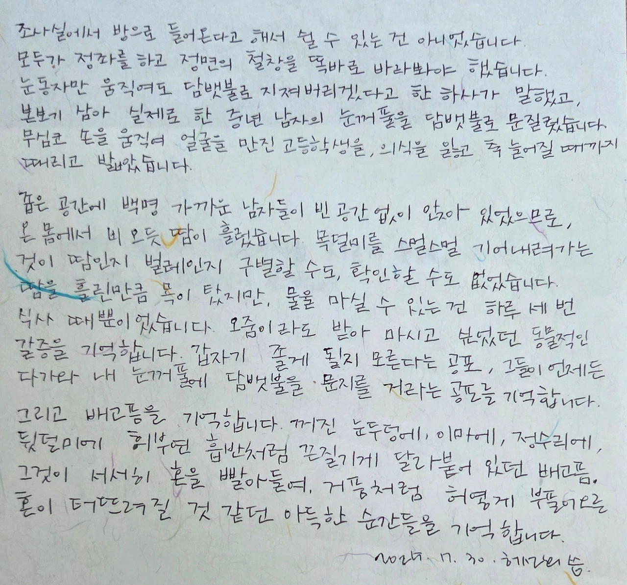 끔찍한 비극을 담담히 말했다.