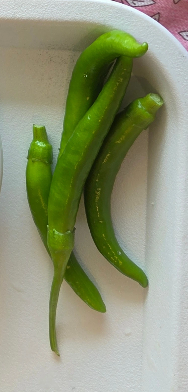 김 OO 어르신이 요양원 텃밭에서 고추를 따오셨다. 얼마나 많이 따오셨는지 식판에 몇 개씩 나눠드렸다.