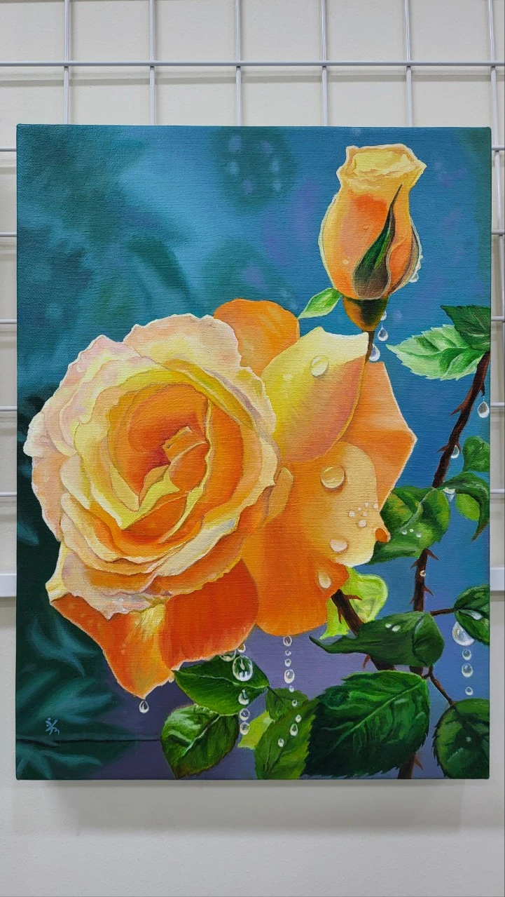 사람의 정신세계는 무궁무진하다. 지금껏 쓰여진 많은 문학작품들이 있는데도 재탄생하는 글들, 수많은 그림 작품들 속에서 재탄생하는 우수한 그림들. 창작의 세계는 무한하다. 그리고 정답도 없다. 누가 뭐래도 내가 좋으면 좋은 그림이다. 공 하나를 스케치 해놓고 너무 잘 그렸다고 샐프 칭찬하는 나를 보며 선생님이 아이처럼 웃던 모습이 생각난다. 나를 위한 나의 그림은 곧 타인을 향한 그림으로 바뀌게 될까? 아직은 나만 좋으면 되는 그림이라서 부담도 없고 즐겁기만 한 색의 세계이다. 나의 첫 유화작품은 아침이슬을 머금은 주황장미였다. 같은 화실에서 그림을 그리는 한 분이 사고 싶다고 제안했지만 팔수가 없었다. 애정을 폭삭 쏟은 그림이기 때문이다. 꽃잎 하나하나에 수십 번의 붓 칠을 하고 나뭇잎 하나하나에 매번 다른 색을 번갈아 칠하고 이슬을 맺히게 할 때는 심호흡을 하며 소중히 소중히 조심하여 색칠했다. 같은 면이지만 같은 색이 아니고 미세한 차이가 있다. 그 미세함에서 느낌이 달라진다.