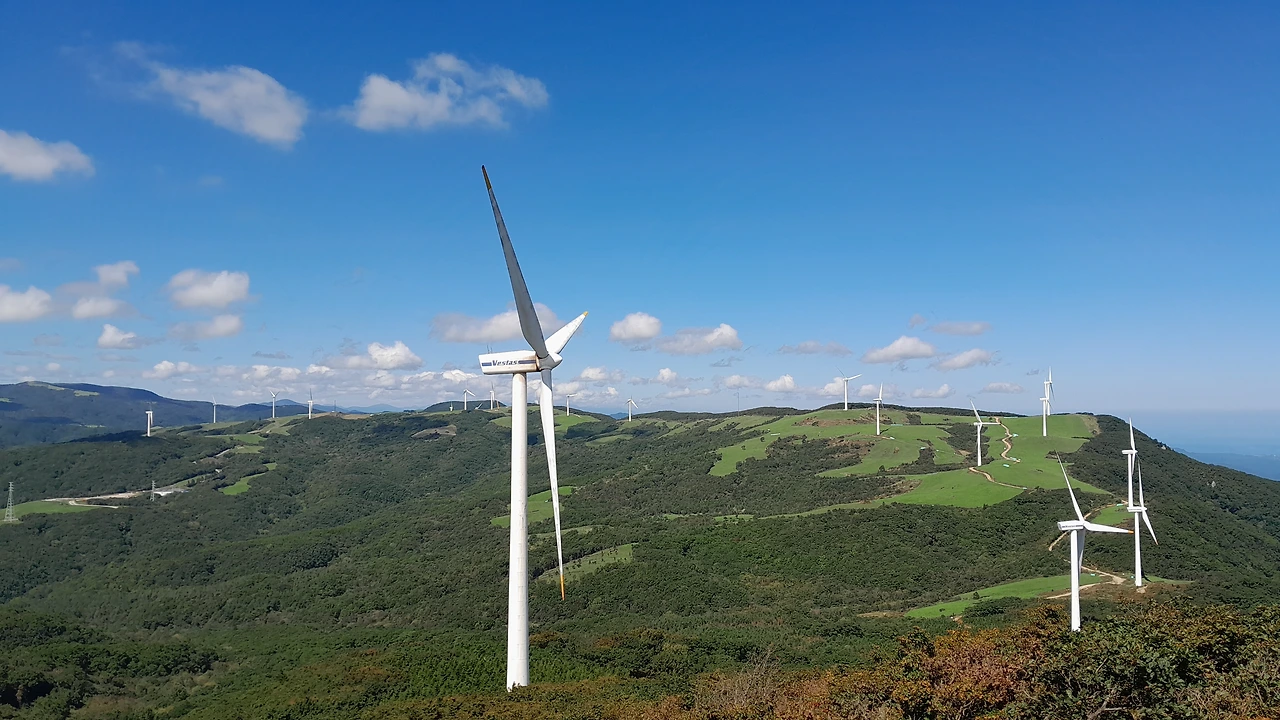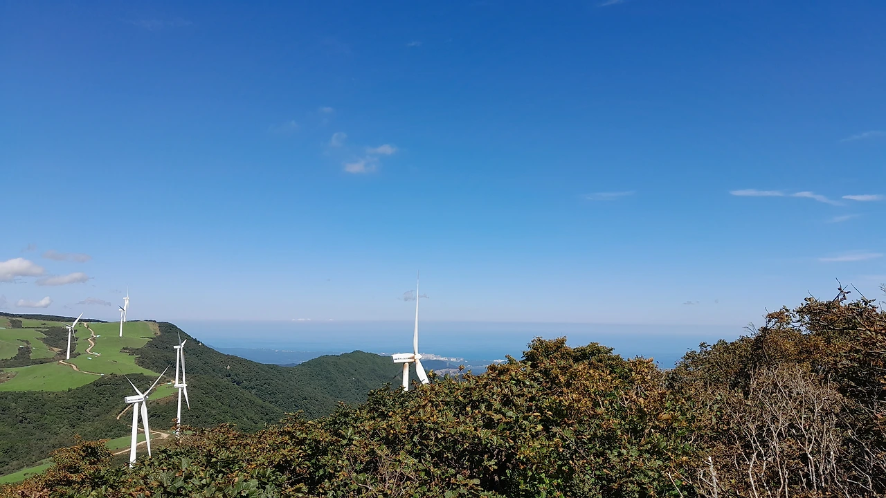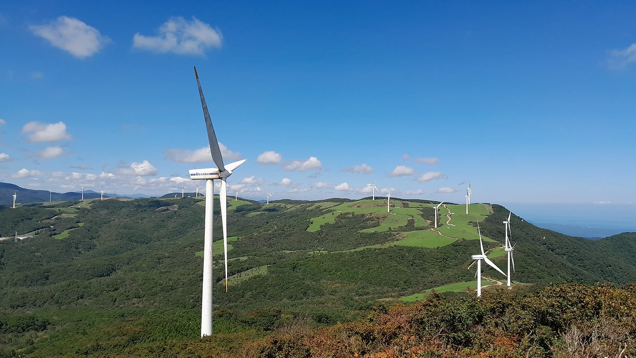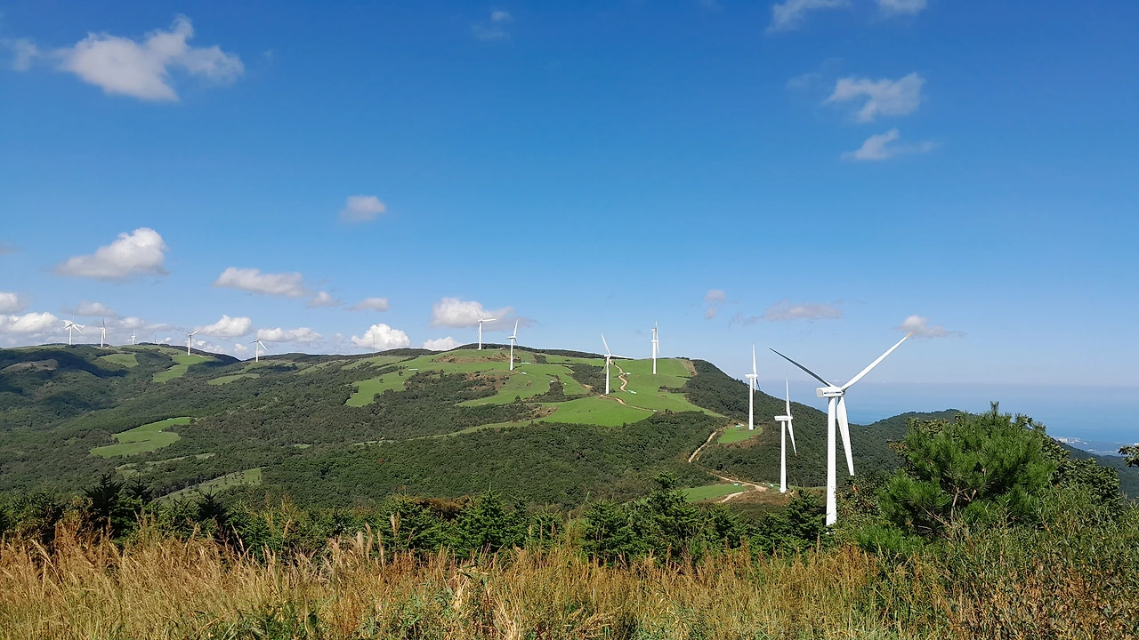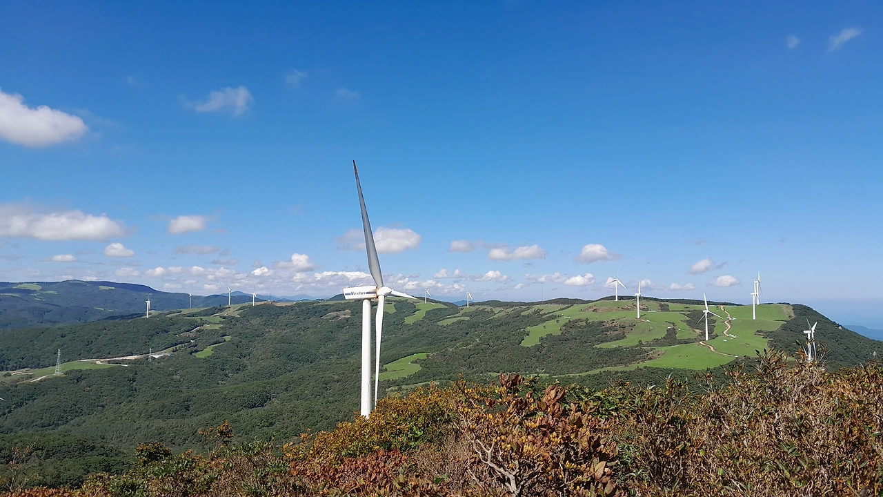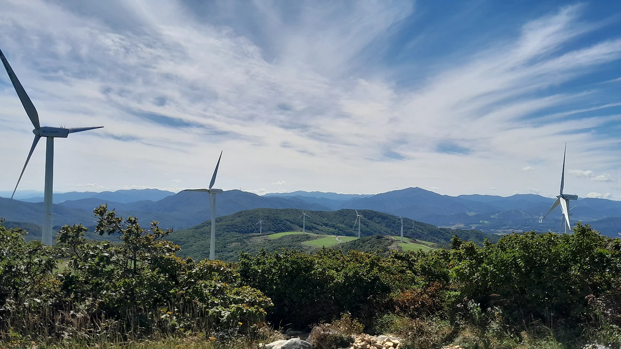 능선을 따라 서 있는 풍차