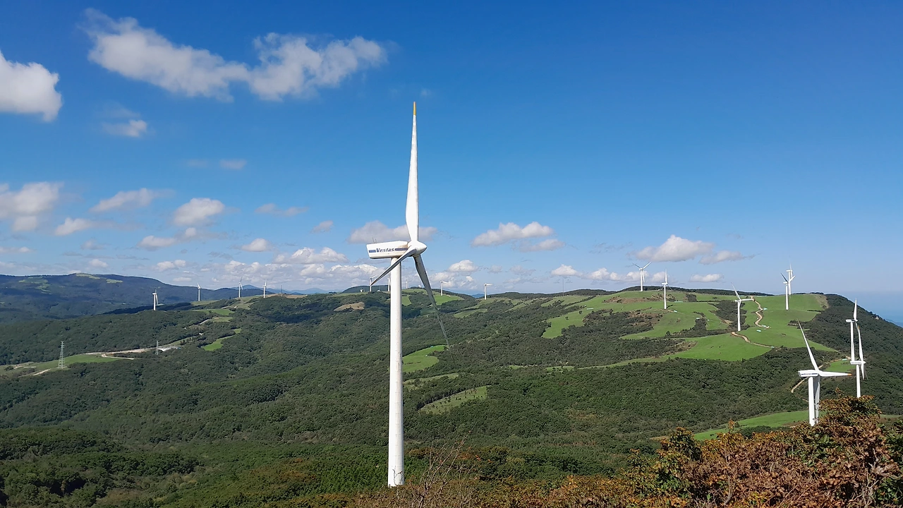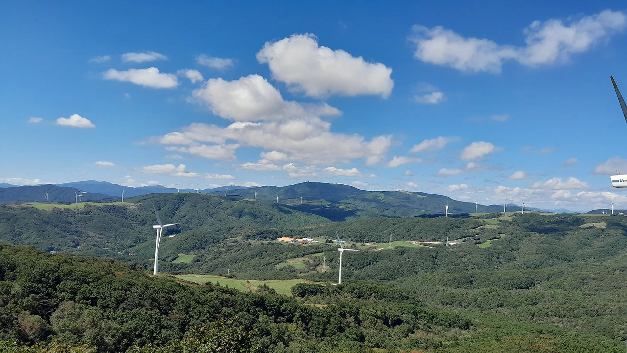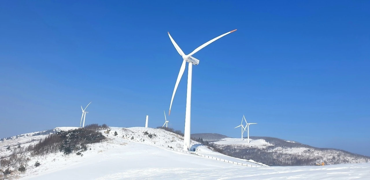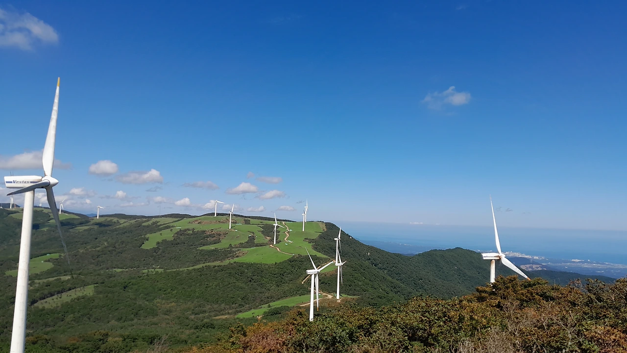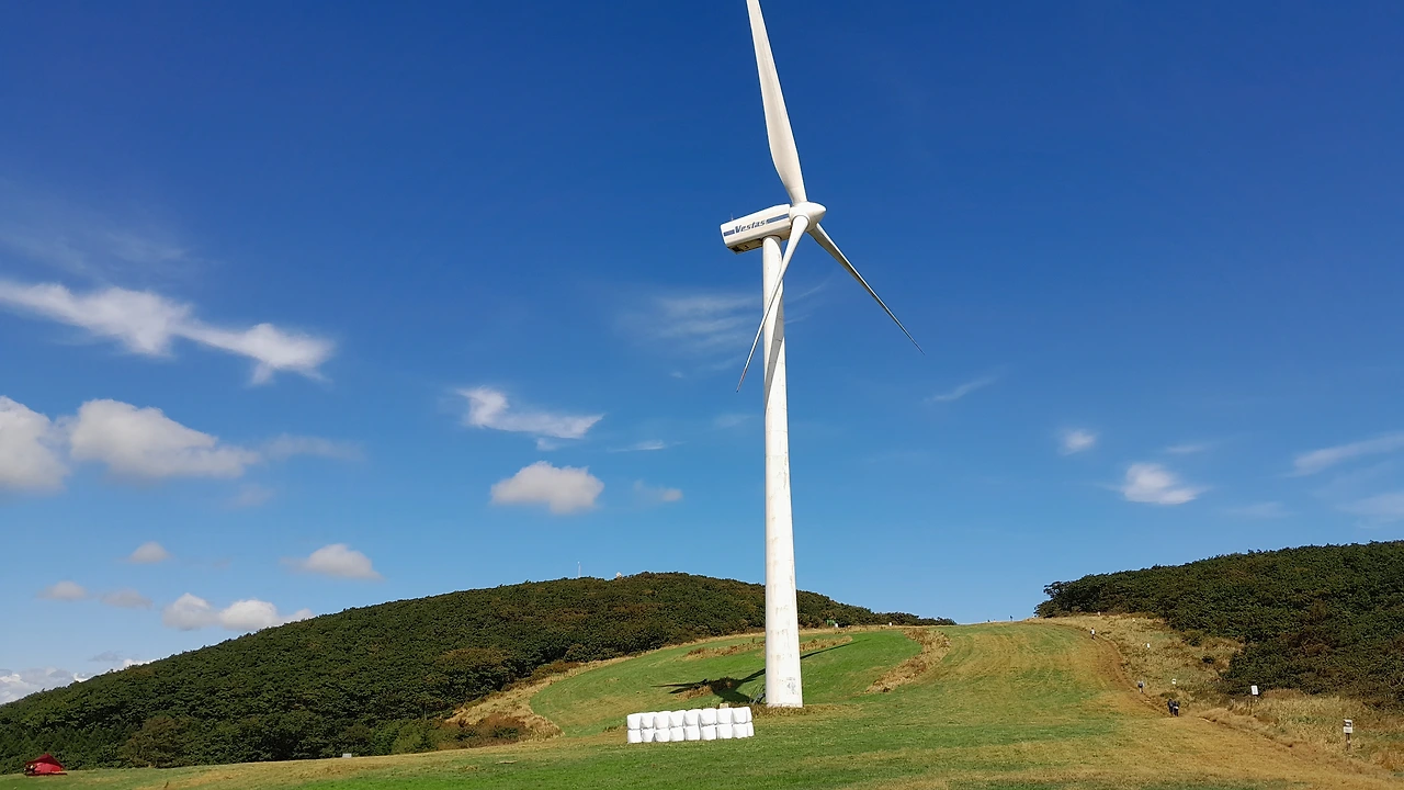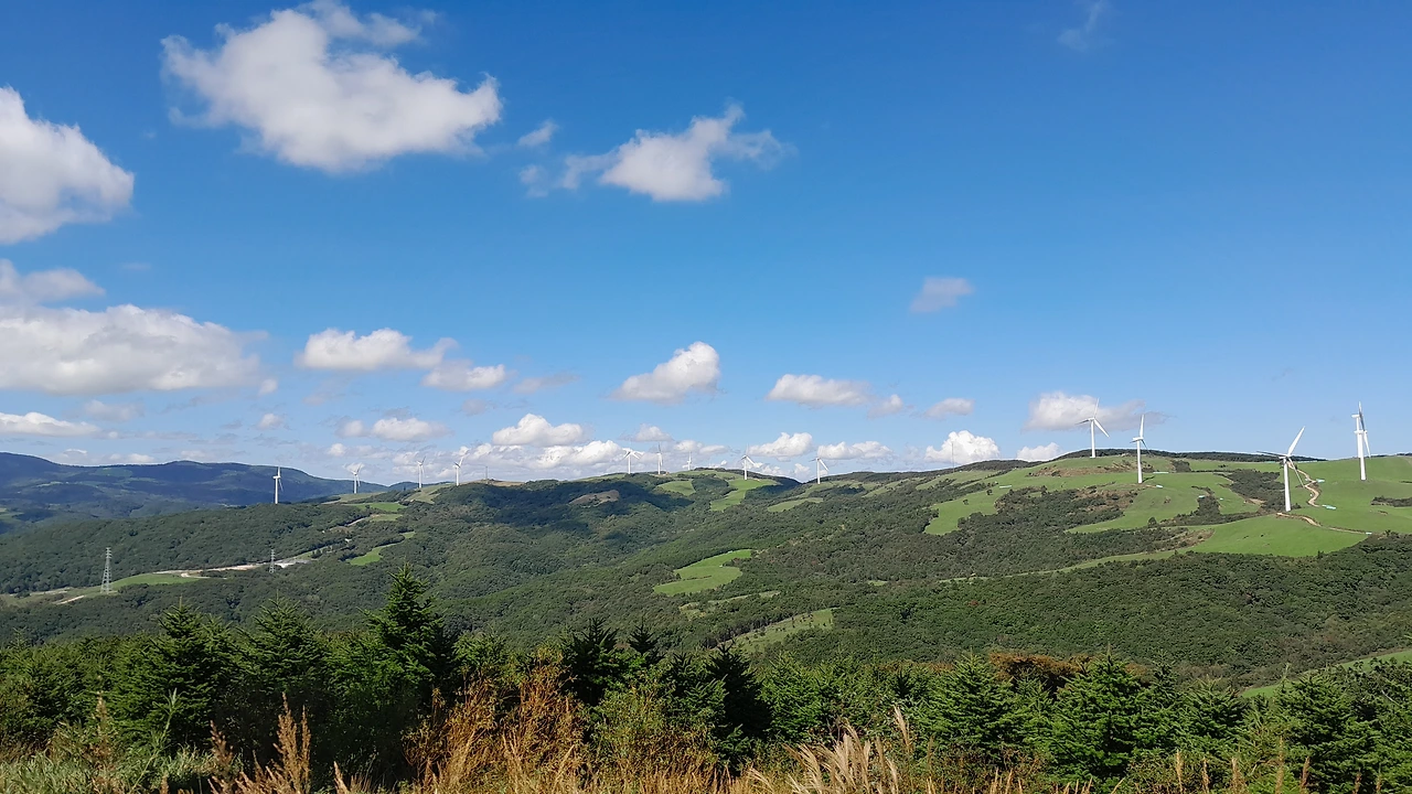 능선을 따라 서 있는 풍차