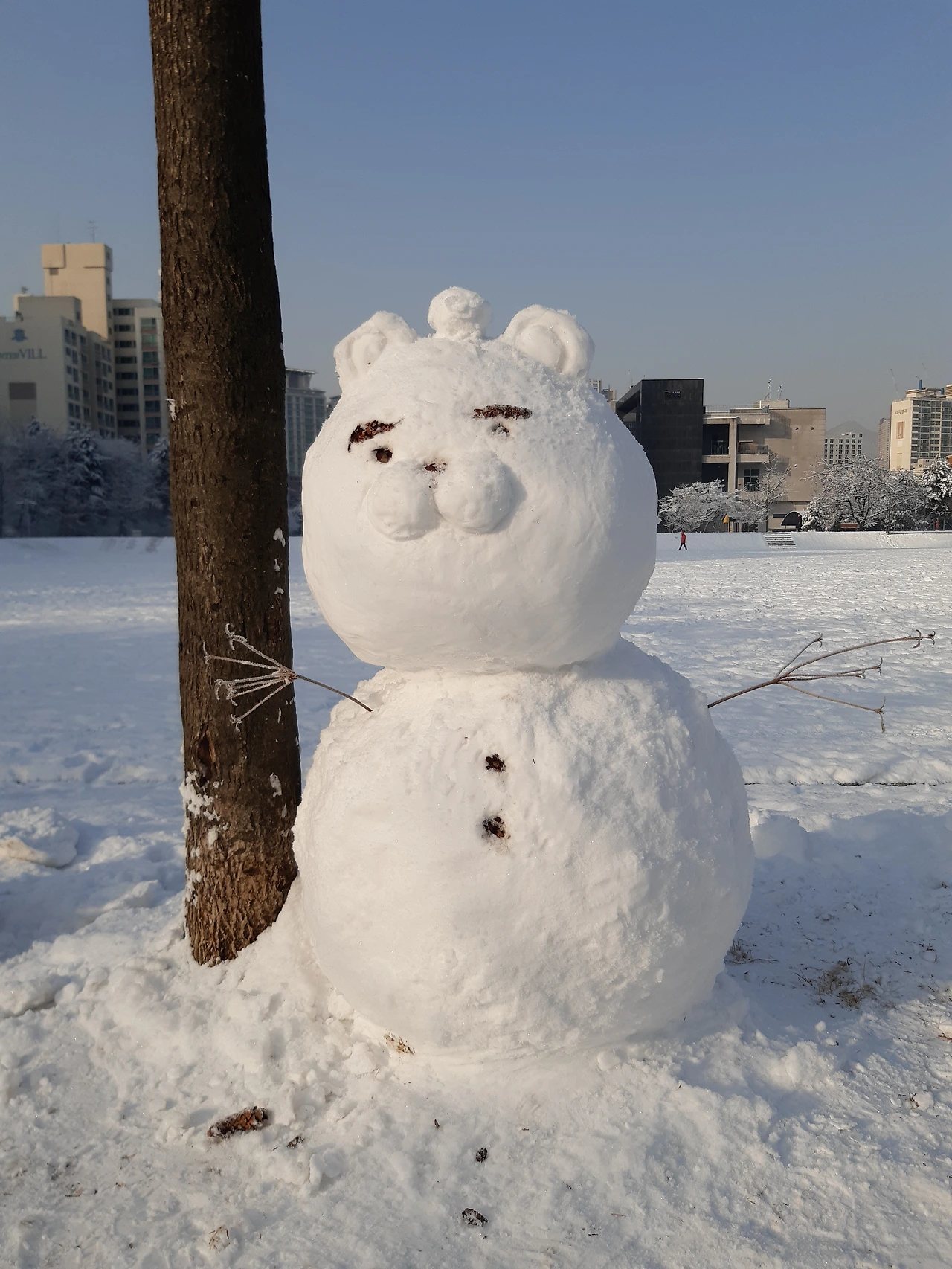 눈사람을 보니 오랜만에 동심으로 돌아간 것 같다. 사람들도 대형 눈사람 앞에서 사진을 찍으며 추억을 남긴다. 나도 지나가다 사진 한 장을 찍었다. 어른이 되어도 마음속 한 구석에는 동심이 자리 잡고 있다.