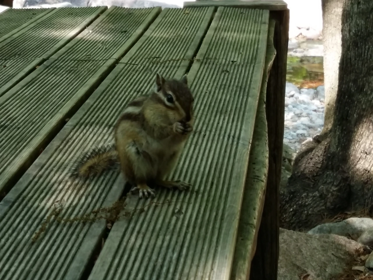 잠시 계곡의 시원한 물에 손수건을 적셔 땀을 닦아 봐도 소용이 없다. 몸은 점점 지쳐가고 부처님께 올리려고 가져간 쌀 1킬로의 무게가 천근이 되어 큰 바위처럼 어깨를 짓누른다. 지친 몸을 잠시 쉬면서 간식을 먹고 있는데 어디서 나타났는지 다람쥐들이 다가와 간식을 달라고 한다. 먹던 것을 조금씩 떼어 주니 간식을 받아 눈앞에서 정신없이 먹는다. 신기하게도 이곳 다람쥐들은 사람을 무서워하지 않았다. 쉽게 말해 다람쥐들이 이곳을 지나는 산객들에게 길세를 받고 있었다. 간 큰 녀석들이다.