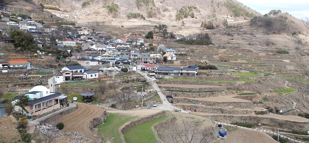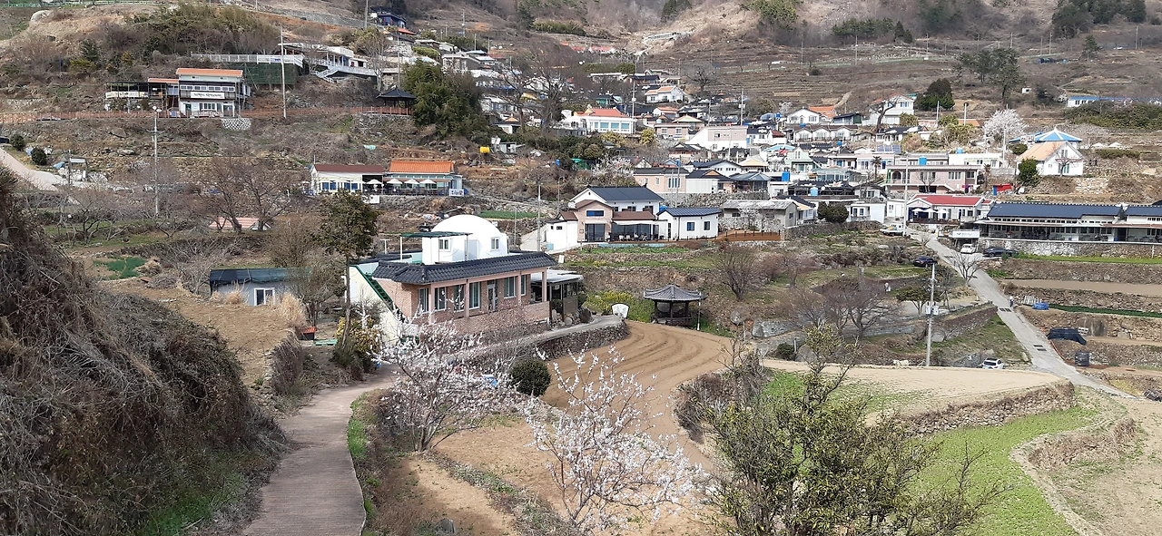마을 뒤에는 설흘산과 고개뭉댕이산
