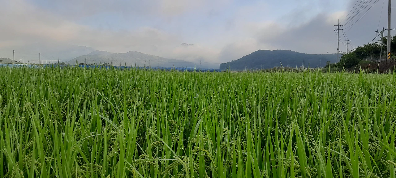 영롱한 이슬이 벼 잎에 맺혀 그네를 탄다.