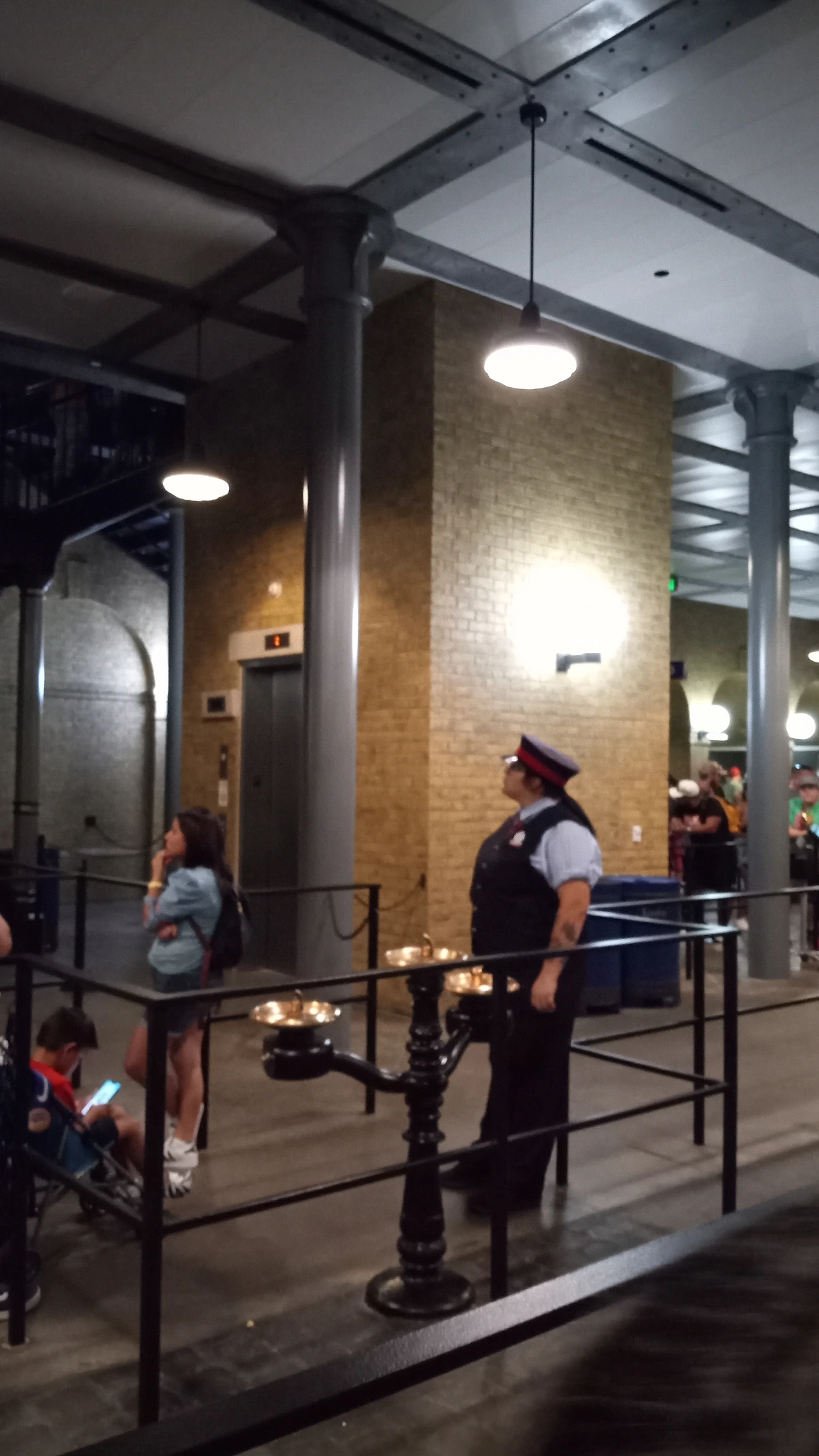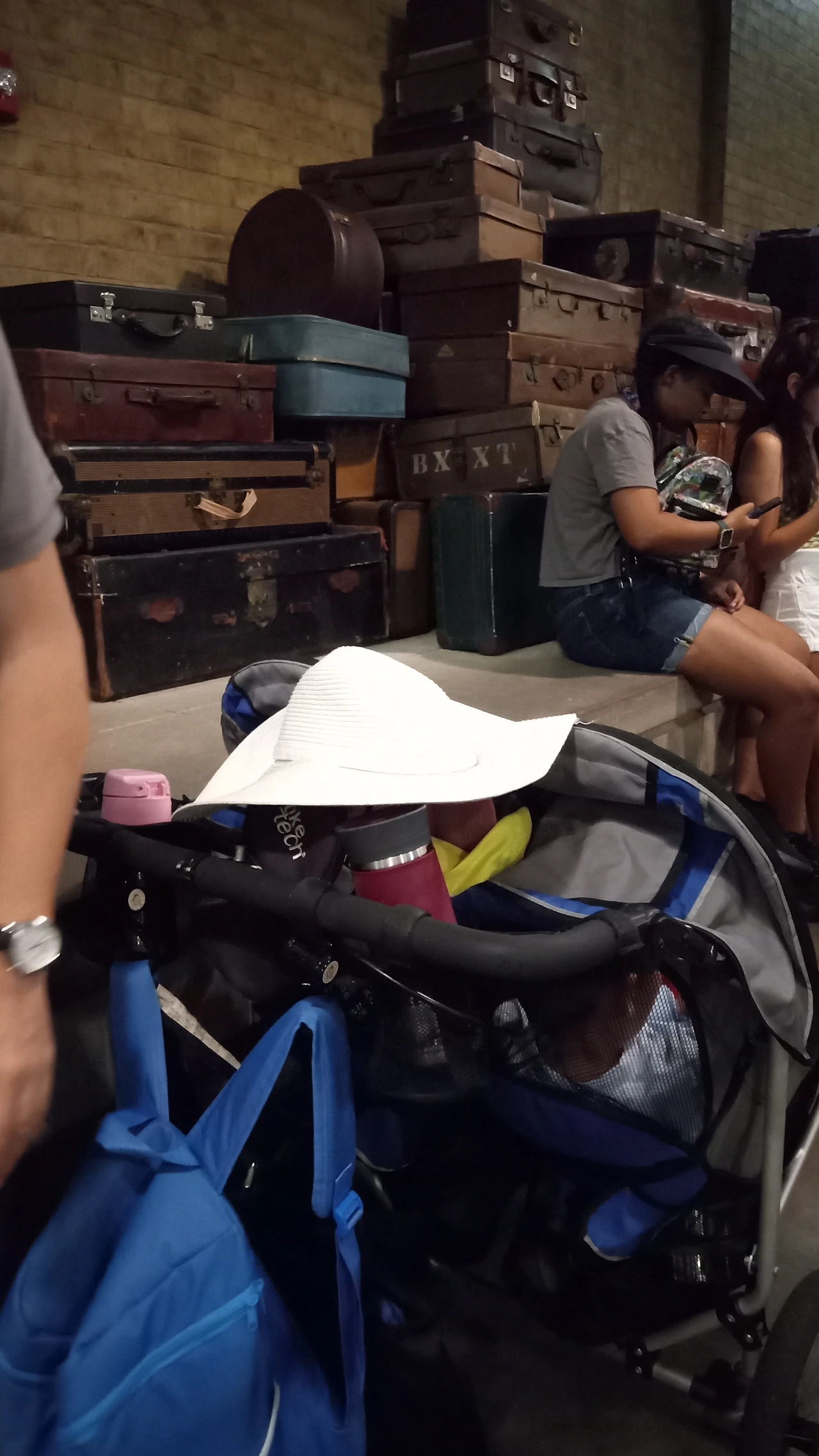 기다림은 계속된다. 그나마 곳곳에 이렇게 해리포터 소품들이 배치돼있어 구경하며 사진 찍는 재미 덕에 지루함이 덜하지만, 줄지 않는 줄을 보며 지치는 건 어쩔 수 없다. 탈라하시에서 함께 놀러 온 가족은 새벽같이 출발해 우리보다 일찍 유니버셜에 도착, 무더위 속에서 뜨겁게 불태운 탓에 이미 호텔로 돌아가 쉬고 있고, 늦게 도착했지만 유모차를 끌고 온 덕분에 피로가 좀 덜 한 우리 가족 5인만이 남았다.
