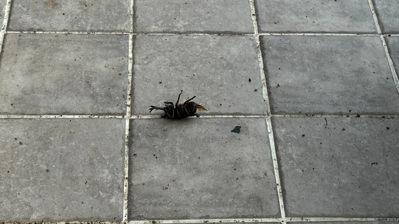 저 자리에서 항상 한두 마리씩 벌레가 뒤집혀 버둥거리고 있었는데 오늘 것은 정말 크다.