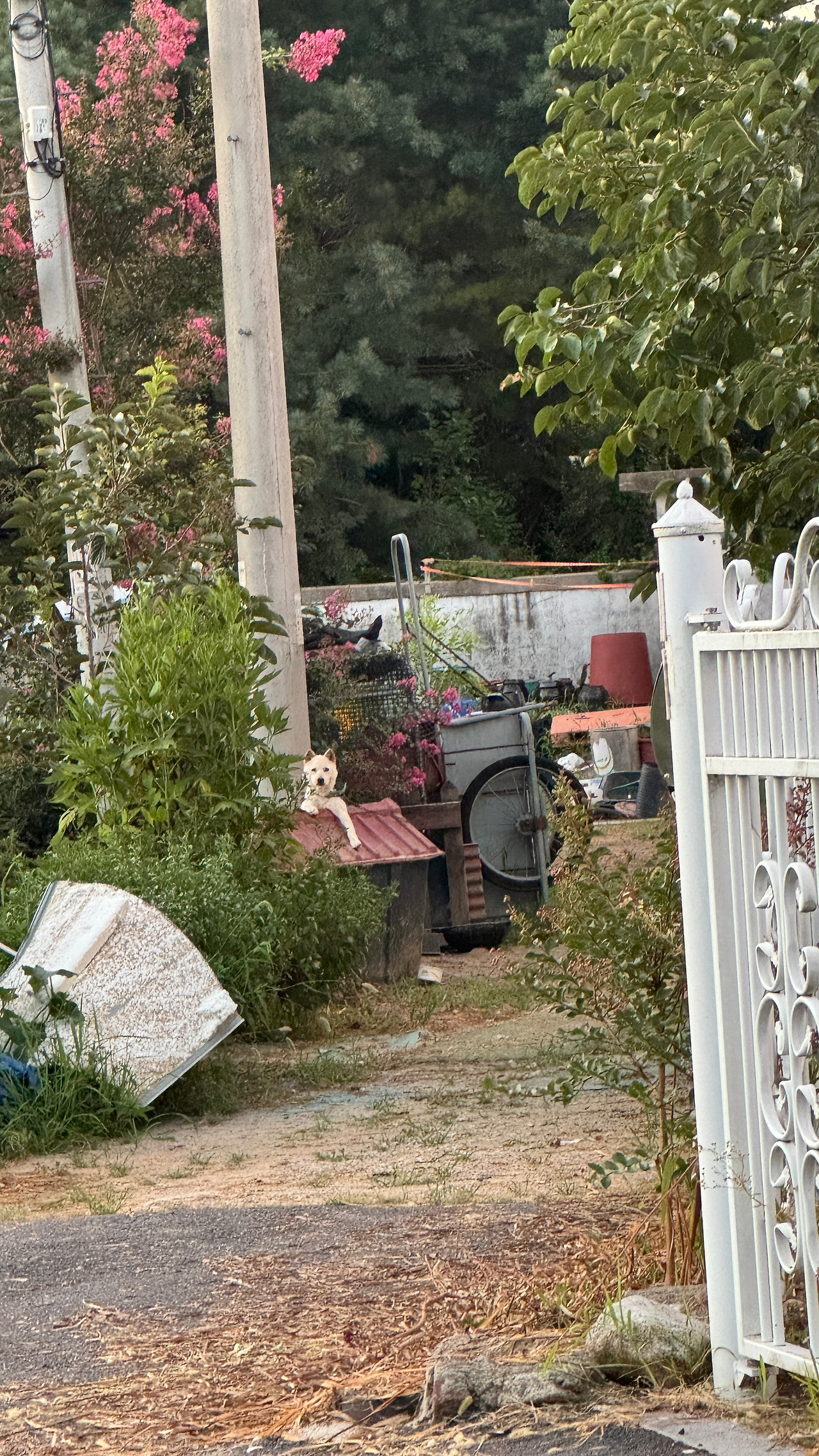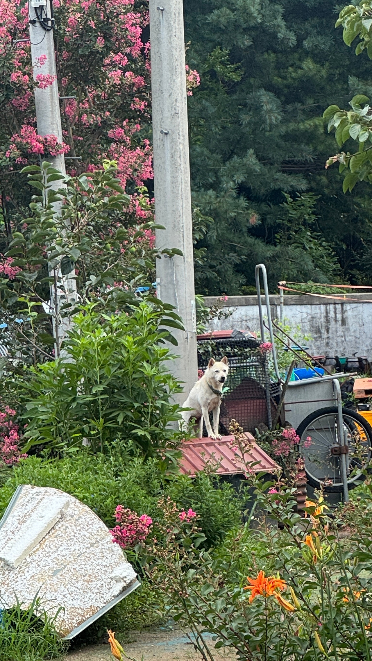 앞집에 사는 개인데 우리가 나오면 항상 지붕에 올라가 우리를 바라보고 있다.