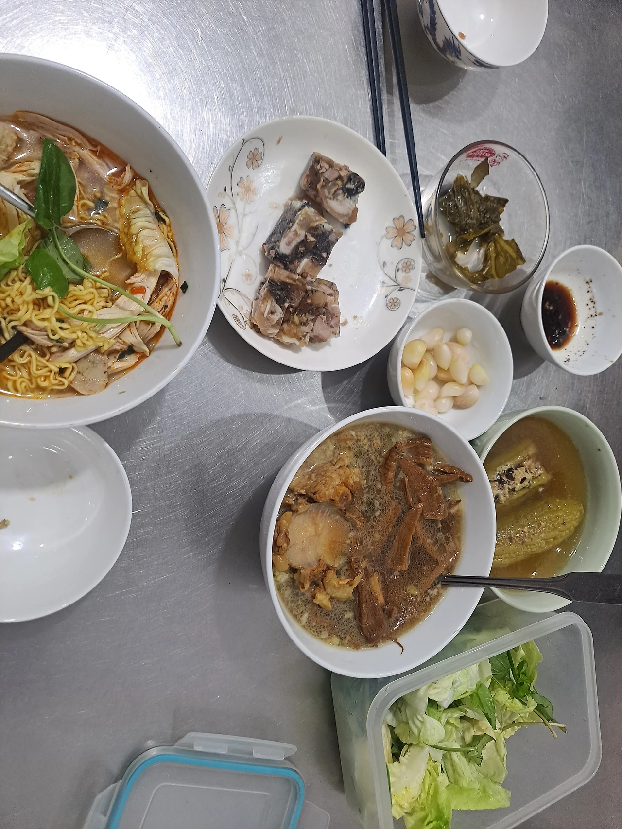 언니는 허기진 나를 1층 주방으로 데리고 갔다. 주인아저씨만큼이나 인자한 얼굴의 아주머니는 내게 라면을 끓여 주셨다. 그리고 상에는 여러 베트남 명절음식들이 놓여 있었는데 그중 반쯩(베트남 설날 때 먹는 떡)이 가장 기억에 남는다. 특별한 맛은 아니어도 찰진 주먹밥 같은 식감이 가끔 생각이 난다.