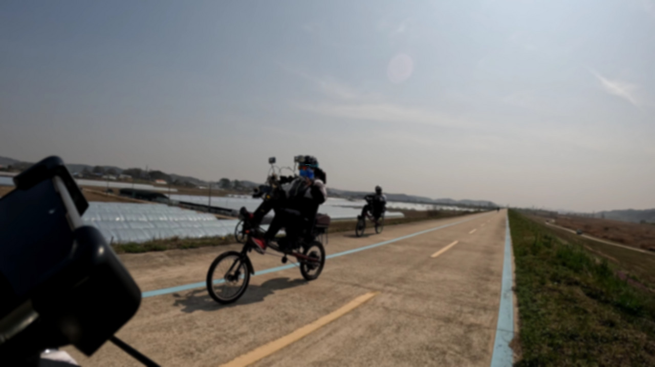 익산으로 가는 길갈대밭이 지루해지려던 참에 길은 산으로, 그리고 논밭 근처 언덕으로 이어졌다. 처음엔 어색했지만 이제는 제법 마주 오는 사람들과도 여유롭게 인사를 나누기도 하고 근처에 살면서 지나쳤던 길들이 이렇게 이어지는구나 하고 알게 되는 재미도 있었다. 특히 이 구간 길에는 일반 자전거 말고도 다양한 생김새의 탈것들이 지나갔는데 그것들을 구경하느라 지루함이 없었다.