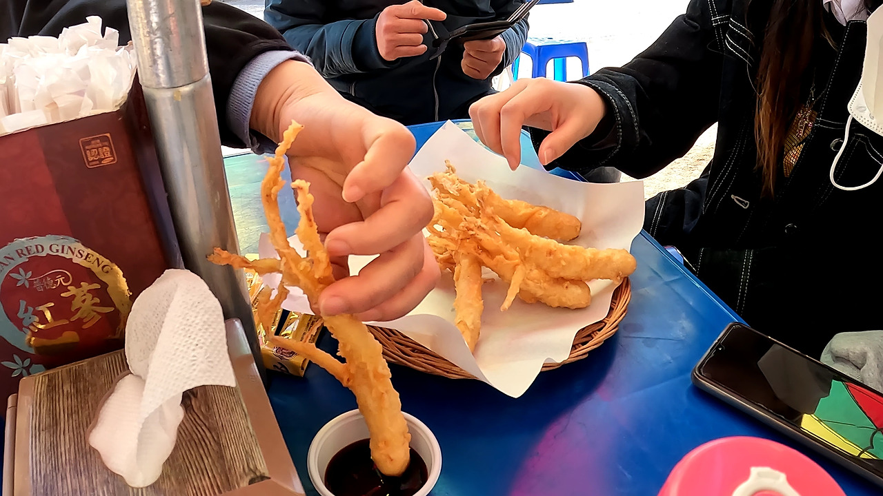 뒤쳐진 나와 동생에게 엄마가 전화가 걸려왔다. 근처에 인삼 튀김집이 있다고 하나씩 먹고 가자는 것이었다. 인삼은 보통 다른 요리에 같이 넣어먹거나 그냥 씹어 먹는 걸로 알고 있었는데, 튀긴 인삼이라니 듣기에 생소했다. 자리를 잡고 앉으니 친절한 가게 사장님이 인삼튀김을 서비스로 하나 더 얹어 내오셨다. 나는 통통한 놈을 골라 한 입 베어 물었다. 바삭한 튀김옷이 씹히고 그다음엔 부드러운 식감의 인삼이 마치 삶은 감자와 같았다. 그리고 은은한 향이 입안에 서서히 퍼져서 생각보다 맛있었다.