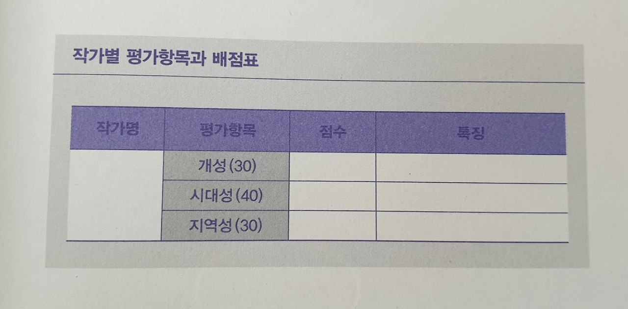 작품성 평가표에 평가 항목을 하나 더 추가하려고 한다. 추가하려는 항목은 '작가가 의도하는 예술과 작가의 삶이 일치하는가'이다. 평가 항목을 '일치성'이라고 구분 지었다.