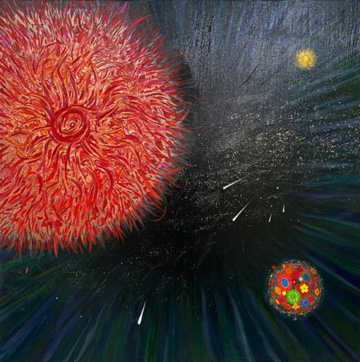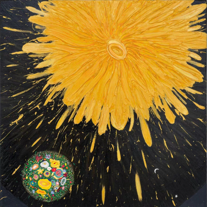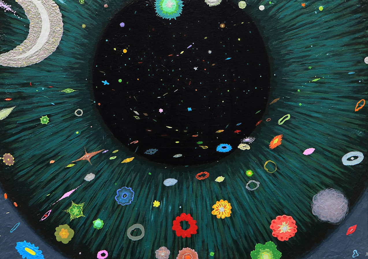 내 그림의 철학은 ‘확률붕괴’의 순간이다. 확률로만 존재하던 우주와 물질이 관찰자가 인식하는 순간 확률적 파동 상태에서 구체화 입자화 된다. 그 순간을 표현했다.