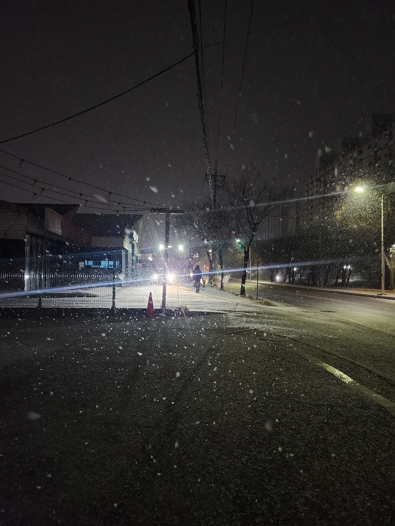그리고 절망적이게도 첫날에 장비 풀세팅하면서 밖을 나섰지만 정작 배달 한 건도 받지 못하고 돌아왔기에 ‘계획만 세우고 제대로 실행 못하는’ 나 자신을 푸념하며 2시간 동안 추운 겨울바람을 가르며 무거운 가방을 메고 거리를 활보했다. 재수 실패 후에 앞으로의 계획과 꼬여버린 20대 초반을 생각하니 머리가 아팠고 매번 허탕만 치며 부모님의 꾸중까지 듣게 되니 다음날에 마지막 한 번만 해보고 도보로 배달해야겠다고 마음먹고 집으로 돌아갔다. 다음날에도 허탕 치는 줄 알았으나 2시간 만에 김밥천국 배달을 받았고 3천 원의 배달료를 받고 자취생이 살 것 같은 빌라주택단지에 들어서서 배달완료 사진 찍고 빌라 밖으로 나갔다. 느낌이 묘했다. 내가 잘 배달했는지부터 자전거 타면서 다른 차를 긁은 건 아닌지 하는 사소한 걱정을 하며 집으로 왔다. 그리고 그때 이후부터 자신감이 붙어 밤마다 배달을 나가게 되었고 점점 배달일에 익숙해지게 되었다. 특정 시간대에 어디에 가야 배달을 많이 할 수 있는지, 평소 2500~3000원 하던 배달료가 기상조건 및 공휴일등 할증이 붙어 4500~5000원까지 받게 되니 궂은 날씨에도 쉬지 않고 계속 배달일을 세 시간씩 했다.
