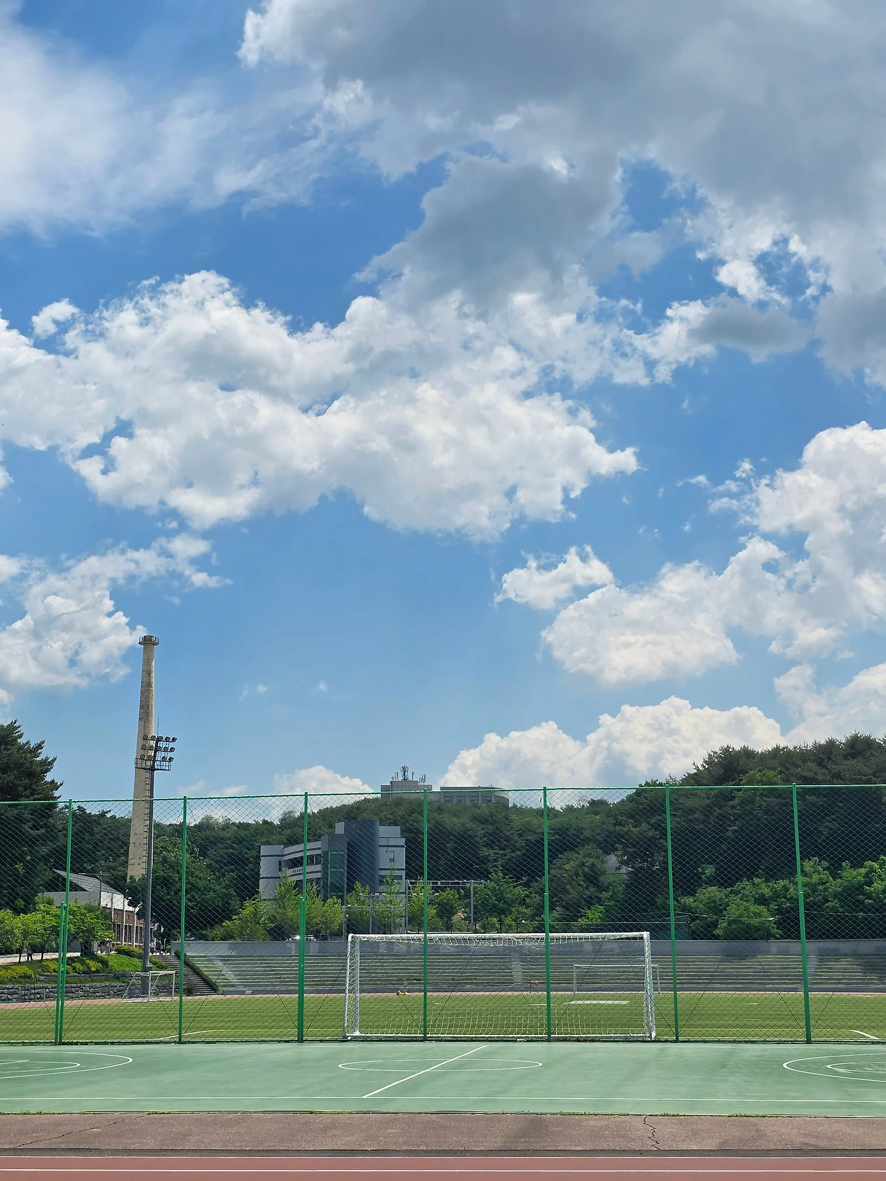 초록 울타리 사이로 모자이크가 수놓아져 있다