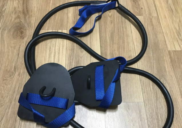 자유형 물 잡는 근육은 삼두를 사용하여 허벅지에 손끝이 스칠 때까지 끝까지 빼 주며 물을 많이 당겨 주어야 하는데 손 끝이 물에 들어가자마자 물을 당기게 되면 어깨 위쪽이 아파 고수들에게 물었더니 그건 자세가 잘못되어서 그런단다. 손 끝이 물에 닿으면 팔 모양을 세워 일명 하이엘보를 만든 각진 상태에서 물을 잡아야 쓸데없는 근육의 힘을 뺄 수 있다. 물 밖 운동으로 삼두근육을 키우기 위해 스트레치코드도 장만했다. 수영을 할 때 굳이 물 밖 운동까지가 필요한지에 대해서는 강사님마다 의견이 분분한데 나처럼 광배에 힘주는 법을 모르거나 삼두근육이 아예 없는 사람은 물 밖 운동을 추천한다. 스트레치 코드는 문 손잡이나 갈고리에 걸어서 연습하는데 광배근 단련에 효과적이라고 한다. 우리 반에 정말 마르고 연약해 보이는데 수영을 잘하는 동생을 보니 수영을 하면서 삼두 근육이 장착되어 물을 제대로 잡기 때문에 속도가 빠른 거였다. 너무 부러웠다. 필라테스에 쓰이는 고무밴드가 있으면 그걸 이용해도 좋겠다.
