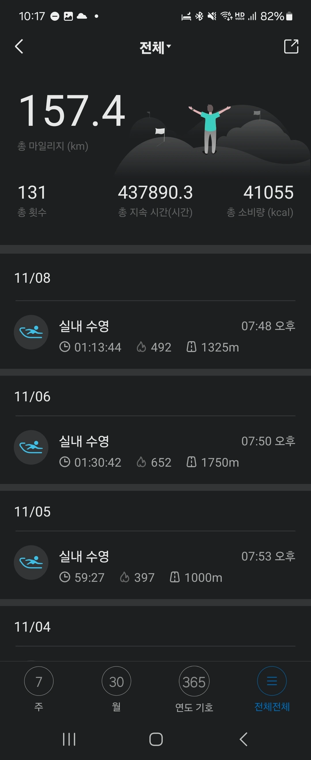 스마트 워치는 물속 운동 기록과 맥박을 체크할 수 있어 본격적인 수영을 하기 위해서 없다면 장만하는 것을 추천한다. 쉽게 숨 찰 정도의 수영을 하고 나서는 160 이상의 심박수가 나온다고 한다. 이를 재는 방법은 목빗근 옆에 손가락을 가져다 대면 1초에 4번 이상 심장이 뛰면 운동이 제대로 되고 있는 것이다. "굳이 심박수까지 체크하면서 수영을 해야 해?"라고 생각하겠지만 스마트워치를 이용하면 신세계를 경험할 것이다. 심박수를 떨어뜨리지 않고 유지하면서 자유형 뺑뺑이를 돌 때 몇 바퀴 돌았는지와 최대심박수를 체크할 수 있어 동기부여가 된다는 점을 가장 큰 장점으로 들 수 있다. 가장 간단하게는 수영뿐만 아니라 실외러닝, 사이클, 러닝, 요가, 줌바, 배드민턴, 줄넘기, 근력운동 등 여러 운동에 활용할 수도 있다. 애플워치를 쓰는 지인은 영법별로 몇 미터 수영을 했는지까지 킥판으로 발차기만 한 경우도 체크가 돼서 부럽긴 했다. (내 건 저렴이라 거기까진 안 된다.)