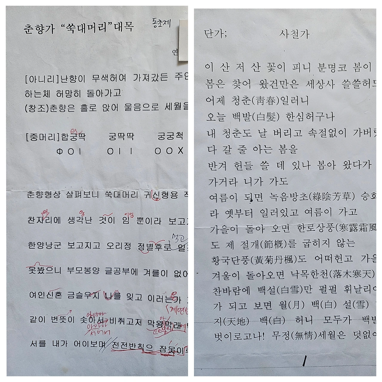 적힌 게 다였지만 선생님을 따라 한 소절이라도