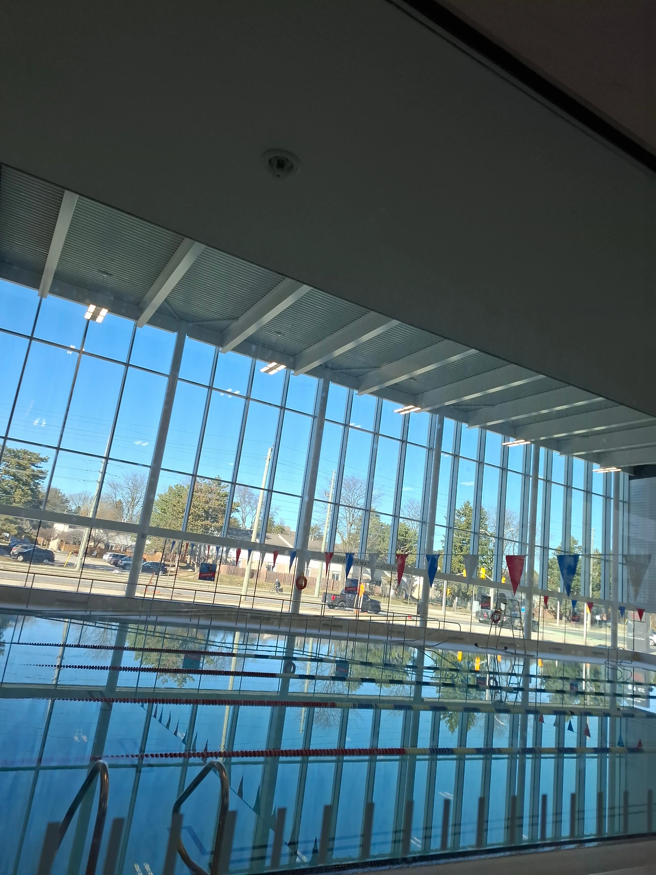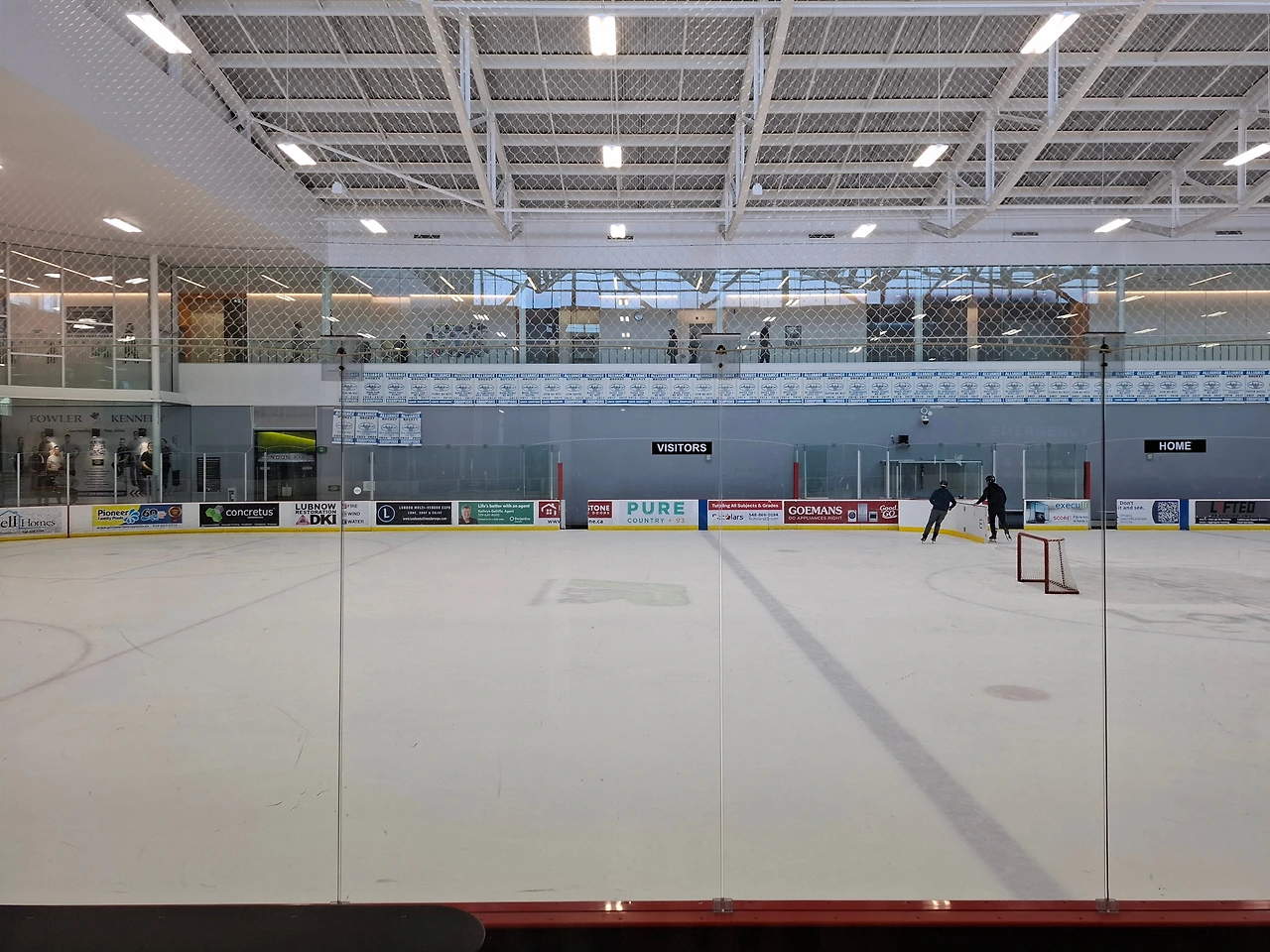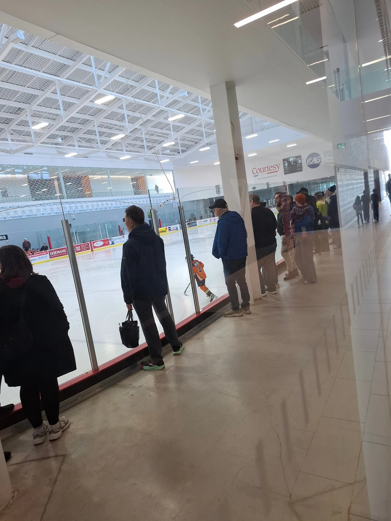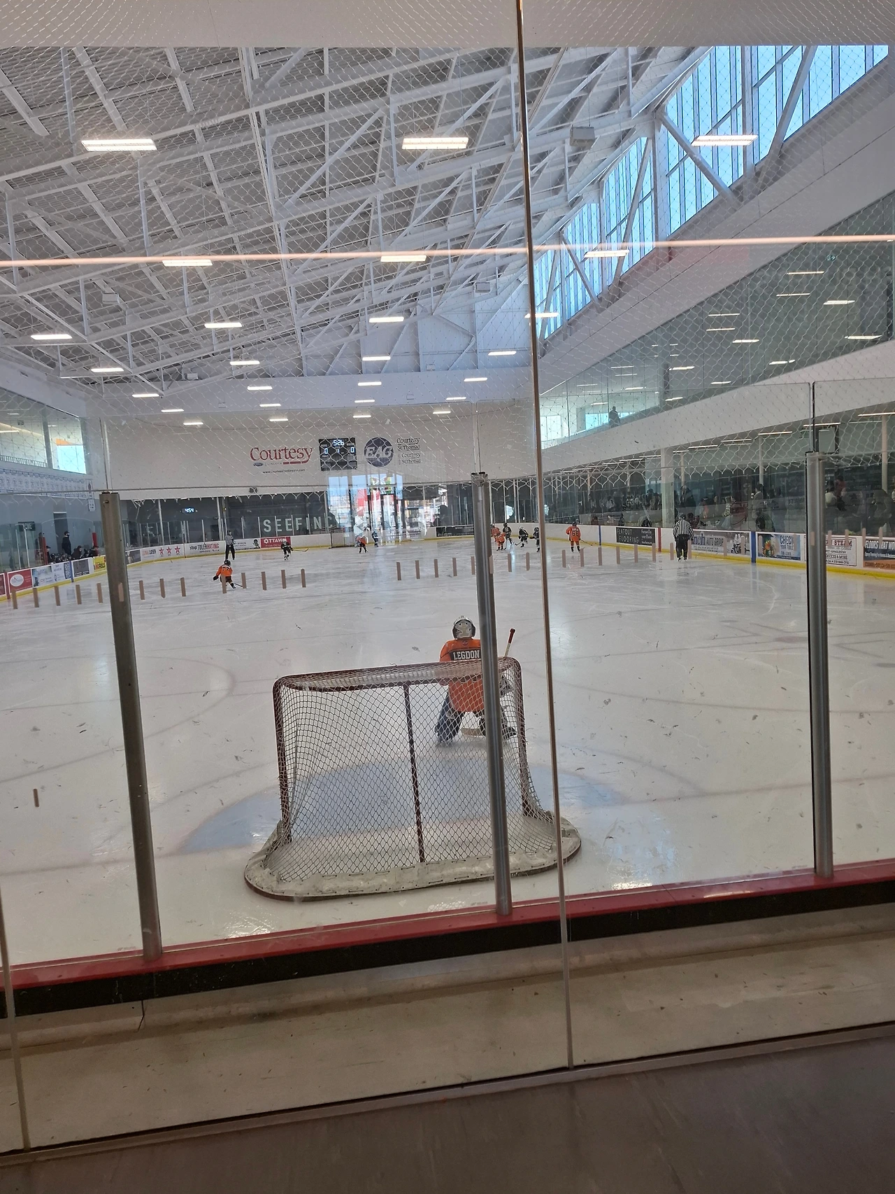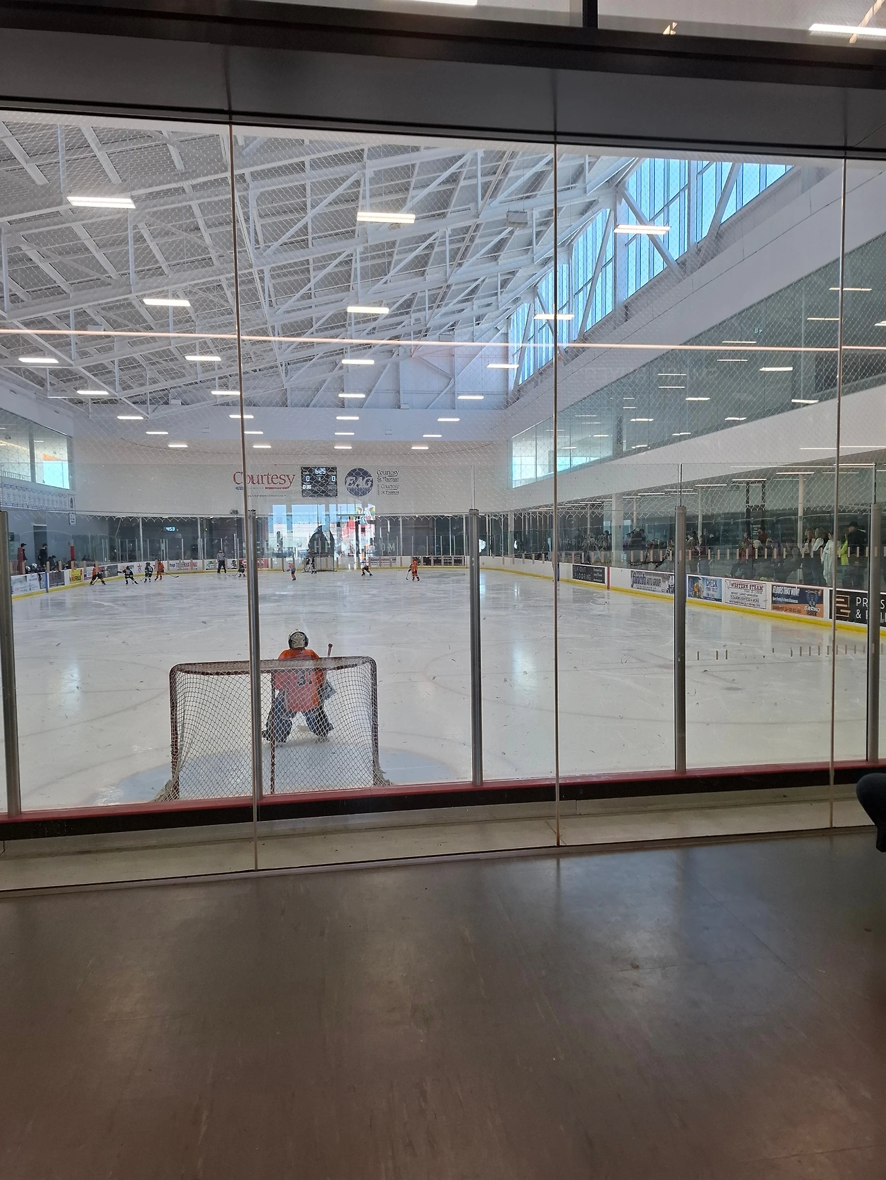 그리고 1층 수영장 오가는 복도 옆에 커다란 아이스링크장이 있어 보통은 하키를 하는 학생들 모습을 볼 수 있다. 아이링크에서 스케이트를 배우기도 하고 피겨스케이트 연습을 하기도 한다. 아이들 경기가 있는 시간이면 경기장 주변을 빙 둘러 가족들이 응원하는 모습에 이끌려 나도 모르게 같이 경기 관람을 하게 된다. 하키에 진심인 캐나다답다.