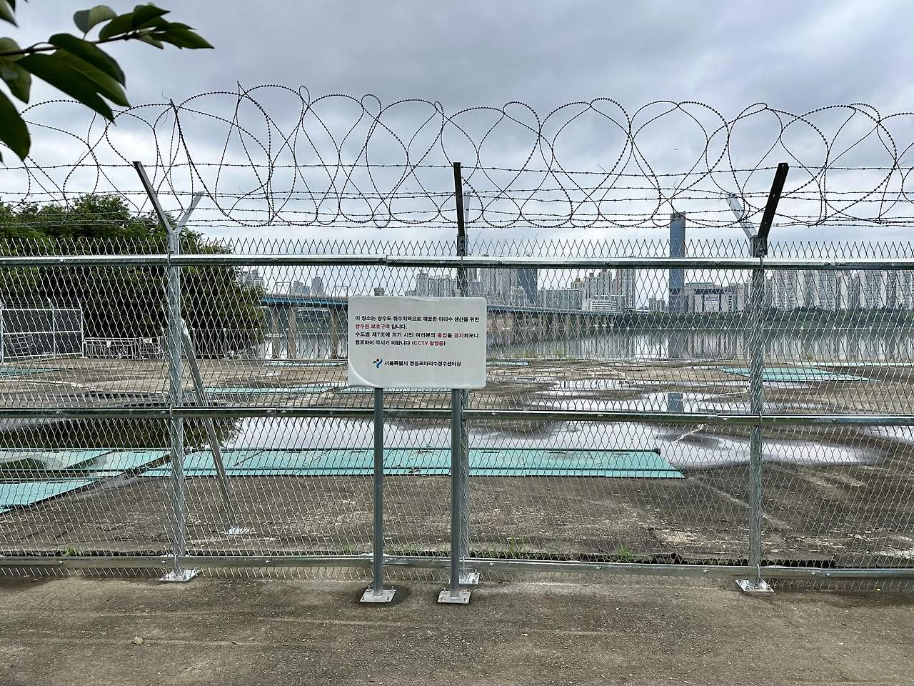 기이하게 생긴 버드나무며 버섯이며 들꽃에 취해 주위를 살피지 못한 채 한참 나아가다 보니 어느새 한강-성내천 두물머리에 닿는다. 그 만나는 풍경을 이리저리 살피며 기리다가 느닷없이 나타난 장소 앞에 우뚝 멈춰 선다. 은빛 철조망으로 둘러막고 적어 놓은 글이 있다: 이 장소는 상수도 취수 지역으로 깨끗한 아리수 생산을 위한 상수원 보호 구역입니다.