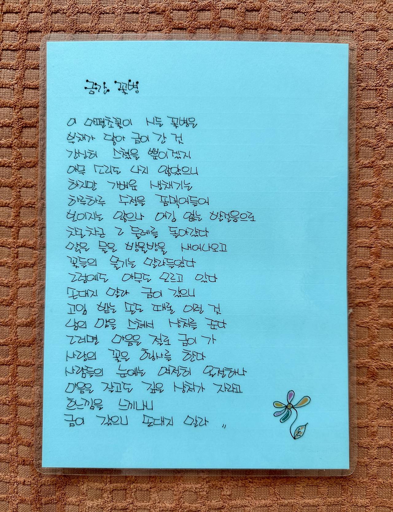 한의사인 내가 왜 하필 상담 치료하는 길을 택해 이런 슬픔을 한껏 끌어안고 사는지 알다가도 모르겠다. 필경 내 목숨 고갱이에 새겨진 무엇이 있으리라. 그저 감사함으로 쭉 간다. 애면글면 살다가 저리도 속절없이 스러진 사람에 비한다면야.
