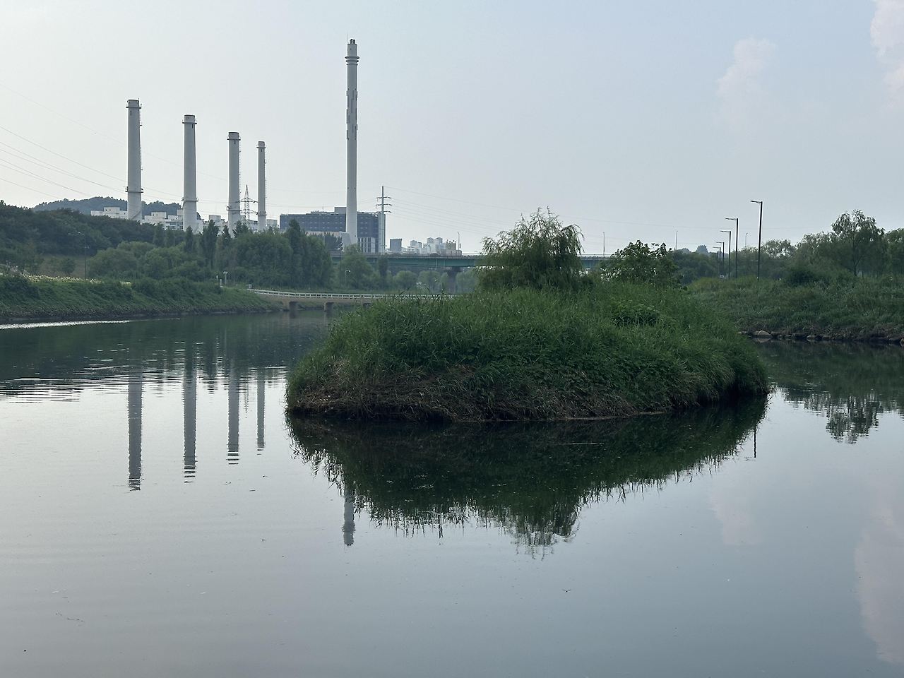 석수역에서 내려 둔치로 내려간다. 예상보다 “무성”하다. 생태 교란 식물로 지정된 단풍잎돼지풀이 교목이기나 하듯 크게 자라 군락 이루고 있는 풍경이 조금 불편하긴 하지만 물가 길에서 물이 보이지 않을 만큼 우거진 풀들은 뙤약볕 아래 걷는 내게 쏠쏠한 위안이 돼준다. 거슬러 올라가다 광명으로 건너가는 작은 다리 위로 올라선다. 제법 싱그러운 소리를 내며 내달리는 물결 아래 커다란 잉어가 떼를 이루어 노닌다. 생명감이 우꾼우꾼한다.