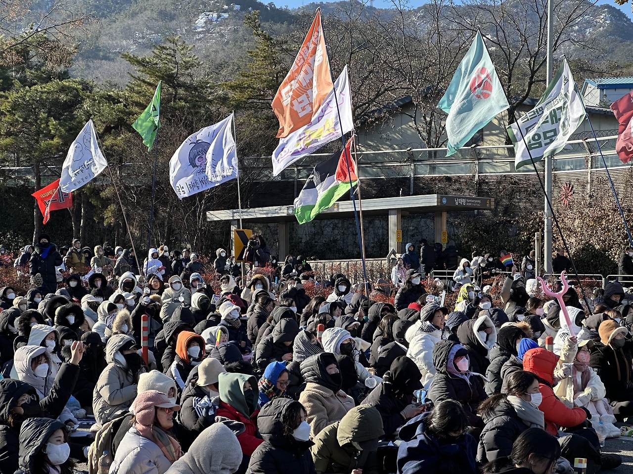 일요일 아침 트위터 읽다가 남태령으로 행로를 정한다. 날씨가 제법 매섭다. 밤을 지새운 사람들은 얼마나 추웠을까. 저체온증으로 쓰러진 사람이 있다는 소식을 들으며 미안한 생각이 더욱 깊어진다. 사당역에서 내려 걸어 올라간다. 수많은 공회전 차량으로 대기 상태가 말이 아니다. 남태령역으로 다가가자 쩌렁쩌렁한 마이크 소리가 들려온다. 시민 발언, 구호, 연호, 박수, 노랫소리가 어우러지며 관악산과 우면산 발치를 뒤흔든다.
