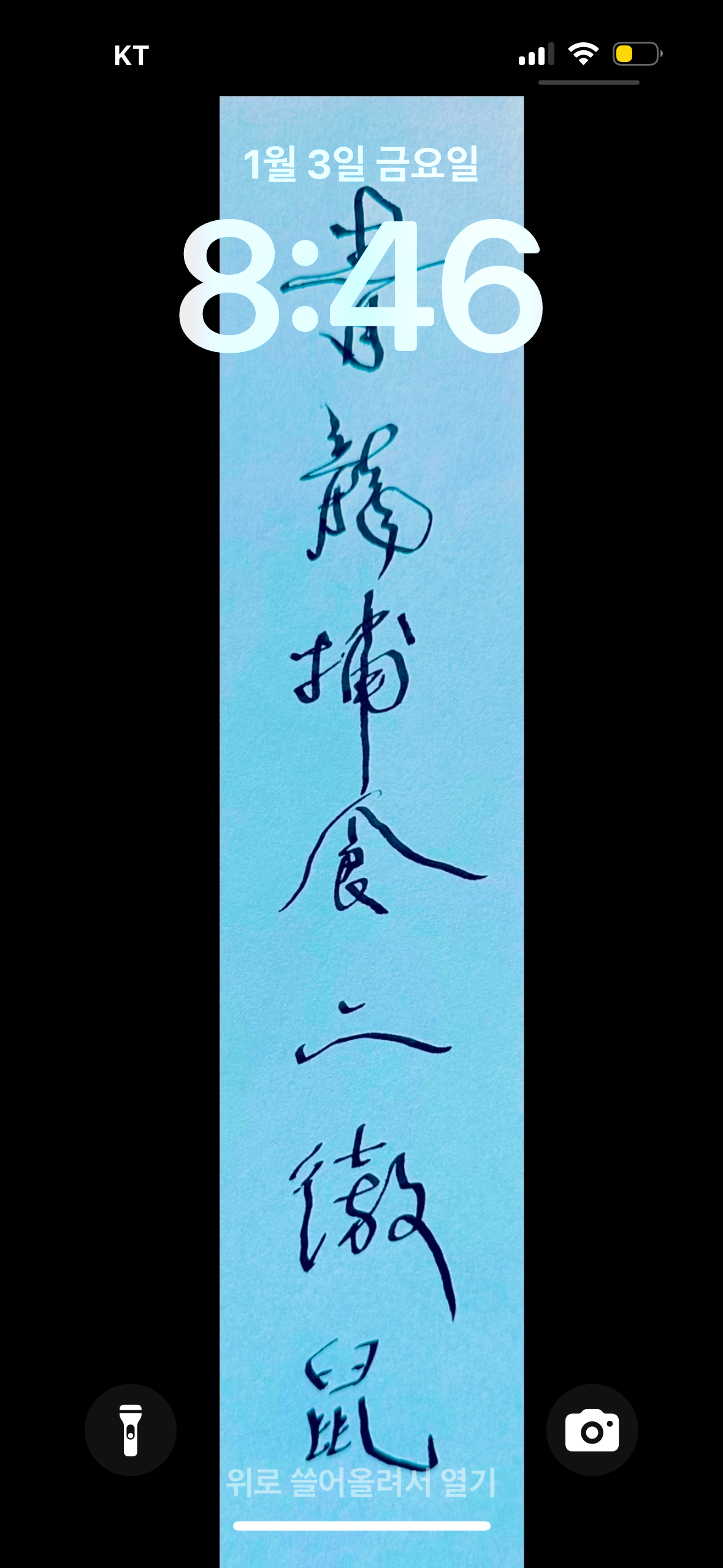 갑진년이니 을사년이니 하는 용어는 태음력에서 나왔으므로 엄밀하게는 아직 갑진년이다. 을사년은 설날, 그러니까 양력 1월 29일부터다. 을사년이 오기 전에 명신이 부부를 처단해야 한다. 그러기를 바라 일 년 가까이 스마트폰 배경 화면으로 갑진부(甲辰符)를 깔고 열 때마다 기원했다. 탄핵이 인용될 때까지 배경 화면을 바꿀 수 없다.