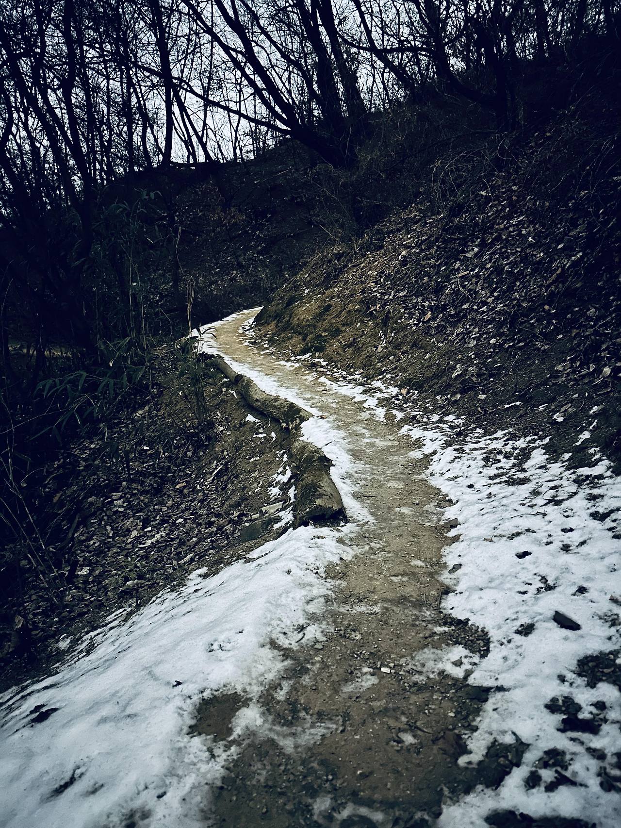 매일 새벽 나는 나지막한 산길을 걸어 출근한다. 남쪽에서 비탈길을 올라 능선길 따라가다가 북쪽 비탈길에 이르면 아연 풍경이 달라진다. 눈이 여전히 남아 있다. 심할 때는 아예 발길을 들여놓지 못하고 돌아가기도 한다. 거기만 걷기 위해 스노우 부츠를 신을 수도 없는 노릇이니 말이다. 오늘은 길섶에만 눈이 있을 뿐이지만 그래도 아예 눈을 떼고 걷기는 뭣하다. 밤기운이 여전해 어둑어둑할 때는 더 그렇다.