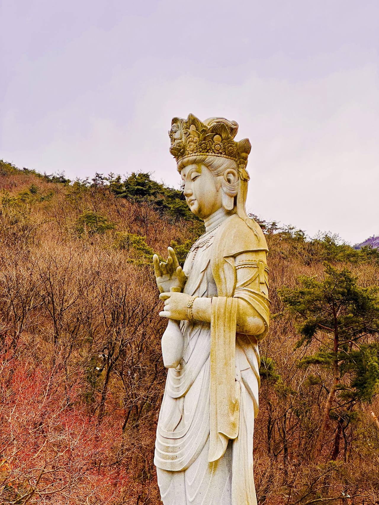 나는 길게 발을 끌며 효제동을 떠난다. 다시 갈 일 없으리라 생각했던 도봉산 회룡계로 향한다. 잔설이 희끗희끗 깔린 길을 따라 2년 전 죽음으로 들어섰던 길 들머리에 닿는다. 망연히 길 없는 길을 올려다본다. 그때처럼 흰 눈을 머리에 덮어쓰고 앉은 산등성이에 커다란 슬픔 하나 걸어놓는다. 내려오다 그 슬픔을 우뚝 서 계신 회룡사 관음보살님께 맡긴다. 홀연히 김상옥 의사 동상에 서렸던 보랏빛이 관음보살상에도 드는 걸 본다. 산새가 울음소리를 거둔다.
