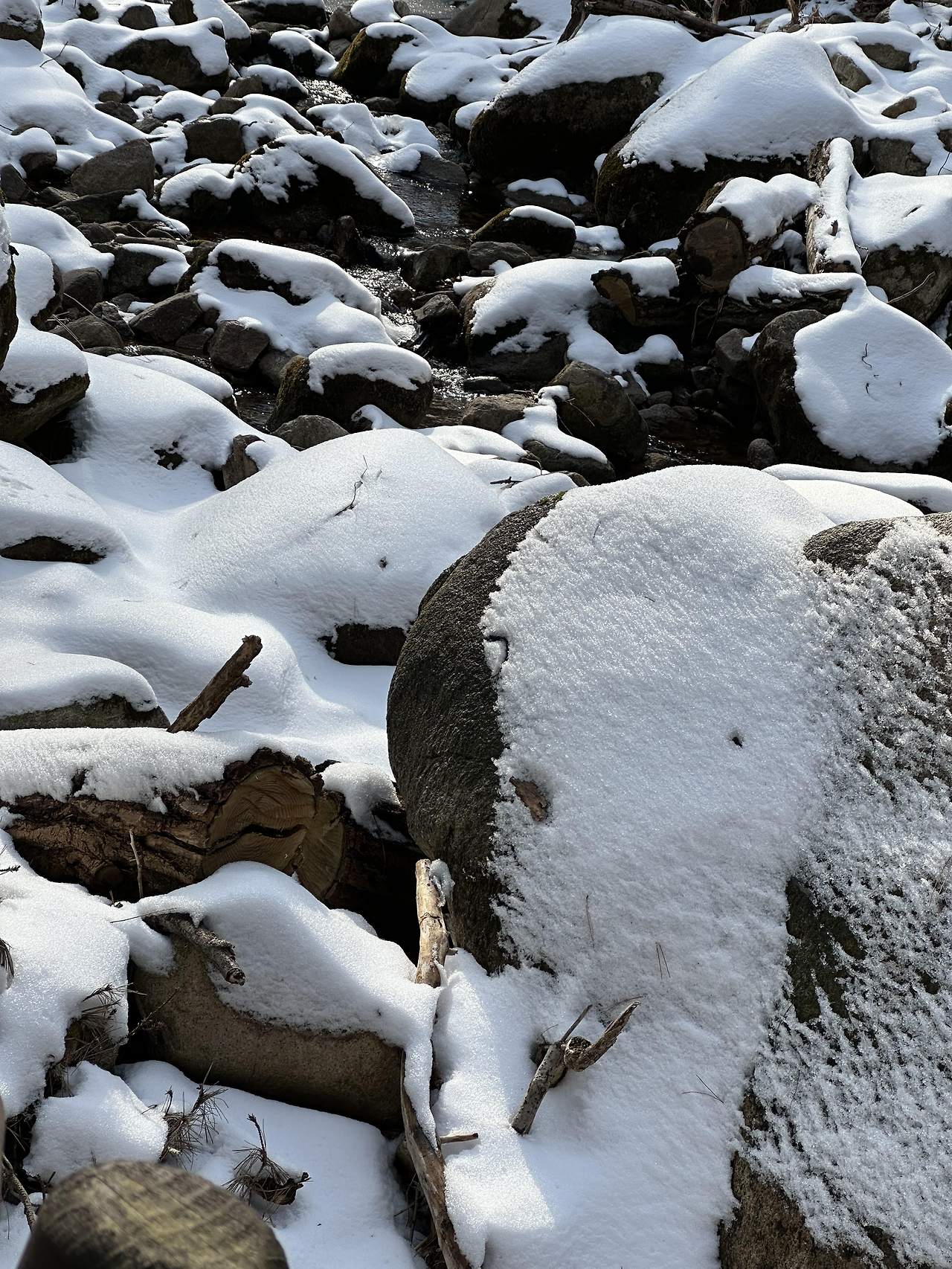 북한산 소귀천 계곡은 북한산 계곡 걷기 과정에서 그 일부를 걸은 적이 있다. 오늘은 나머지 부분을 물에 주의하면서 걷는다. 물길을 따라가며 흐르는 모양과 소리를 곱고 촘촘하게 담는다. 쌓인 눈을 요리조리 피하고 덮인 얼음 아래를 엎드려 기며 작은 시내는 졸졸 흘러간다. 낙차 이루는 돌 사이에서는 초르르 소리내고 떨어져 물끼리 닿아서는 똘랑똘랑 소리낸다. 이 모든 소리가 인간에게 이완과 평화를 선물한다. 늘 같은 소리 같지만 지루하거나 지겹지 않으니 언제나 다른 소리임이 틀림없다. 그 소리에선 말간 내음도 피어오른다.