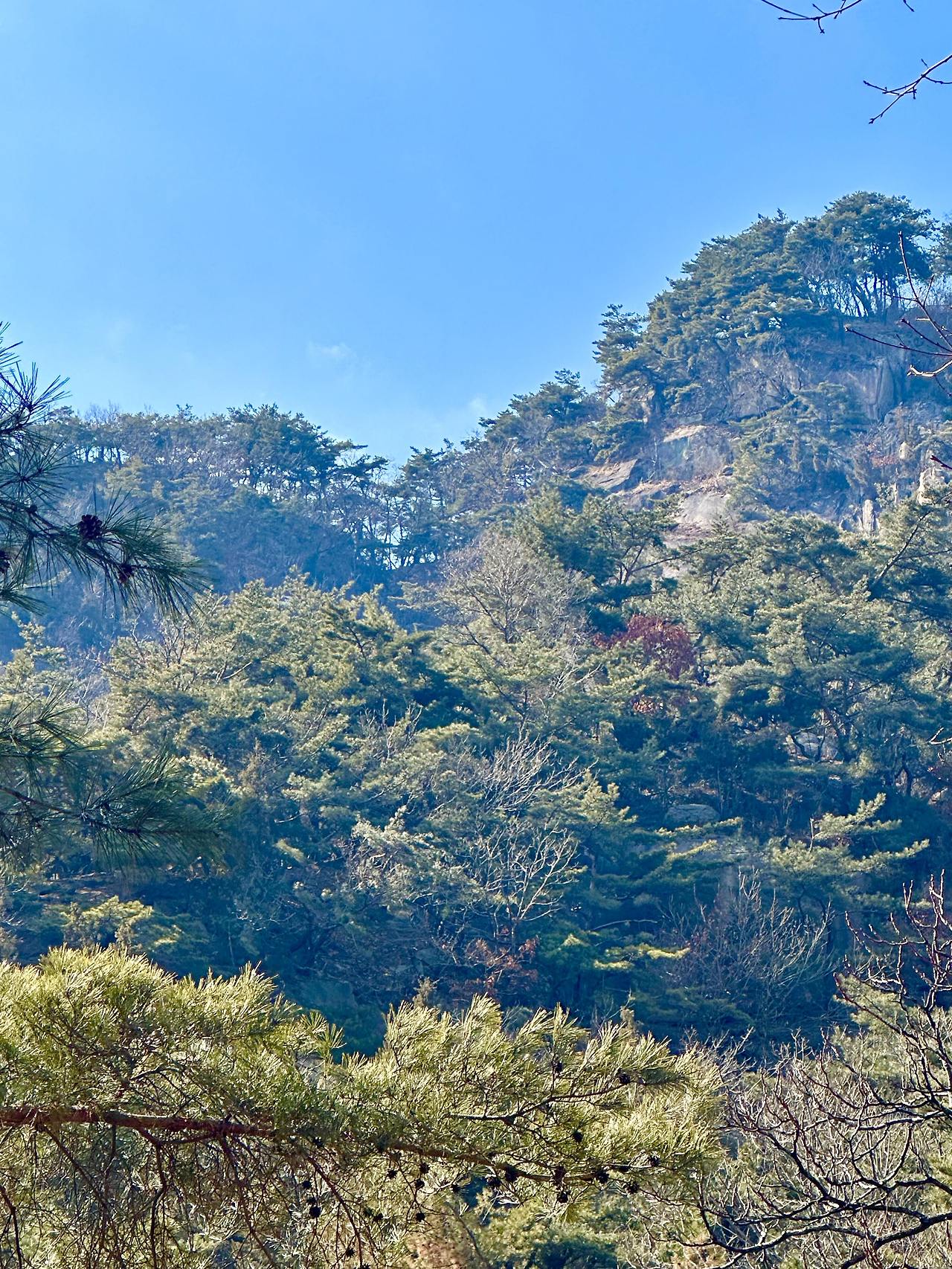 계곡으로 내려가다 보니 양지바른 곳에 나무 의자 하나가 놓여 있다. 이따금 바람이 스치기는 하지만 다사로운 햇볕을 쬐며 앉아 있기에 딱 좋은 곳이다. 상념 흐르는 대로 두고 그저 숲을 멍하니 바라본다. 하 많은 숲 걷기에서 오늘처럼 해 아래 오래 앉아 있었던 적은 없다.