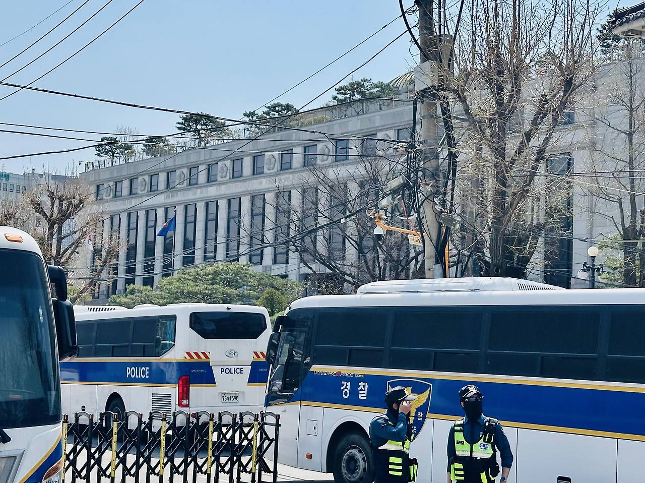 흐드러진 홍매로 잠시 눈 호강하다가 인정전 거쳐 회화나무 군락이 있는 금천 지나 창덕궁을 나온다. 드디어 헌재다. 설마 했지만 경찰차가 철통같이 둘러싸고 있다. 광훈이 떼거리가 얼씬조차 하지 않아도, 경찰은 당분간 경호 체제를 유지한다고 한다. 우여곡절 있었으나 헌재가 나라를 구한 사실 만큼은 부동이다. 헌재 제도 타당 여부는 뒤에 따지자.