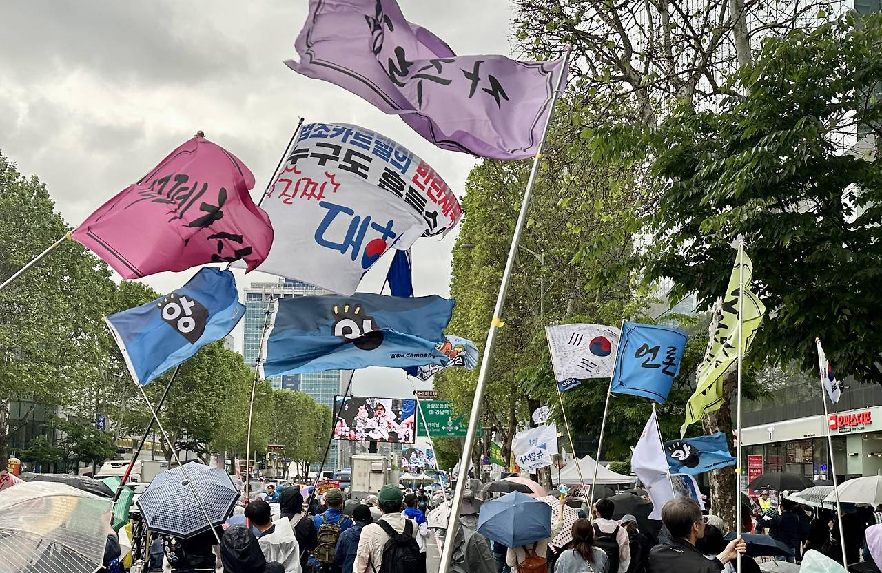 오늘로 스물다섯 번째 광장에 선다. 비정기 집회 포함 스물다섯 번이었던 박근혜 탄핵 집회 때와 같다. 이번에는 여기서 멈추면 안 되겠다. 이 내란 세력이 그 국정 농단 세력과는 비교도 할 수 없는 힘을 지니고 단말마 준동을 거듭하기 때문이다. 심지어 저격 목적으로 사정거리 2km인 총을 구매했다는 첩보가 날아들 정도니, 유세장에 방탄유리를 설치하지 않을 수 없는 상황이다. 어떻게 이렇게까지 나라가 극단으로 망가졌을까. 아니다. 중첩 식민지 허울 대한민국 민낯이 남김없이 드러나고 있을 따름이다. 끝장 보자 다짐하며, 눈물비를 맞는다.
